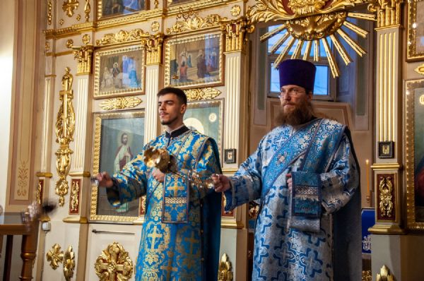 Благочинный Барнаульского городского округа протоиерей Андрей Басов сослужил Митрополиту Сергию литургию в Покровском кафедральном соборе