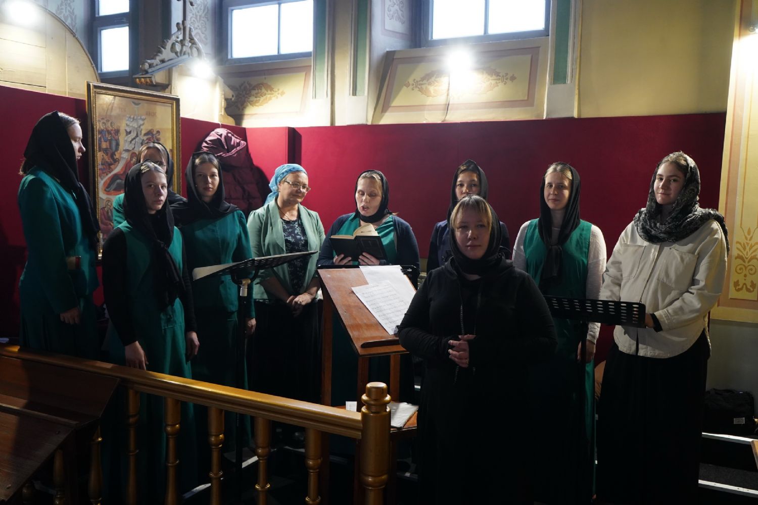 Уставные песнопения исполнили: хор Покровского кафедрального собора, мужской хор Барнаульской духовной семинарии под управлением регента иерея Дмитрия Котова, однородный хор регентской школы под управлением регента Т.С. Прохоровой.