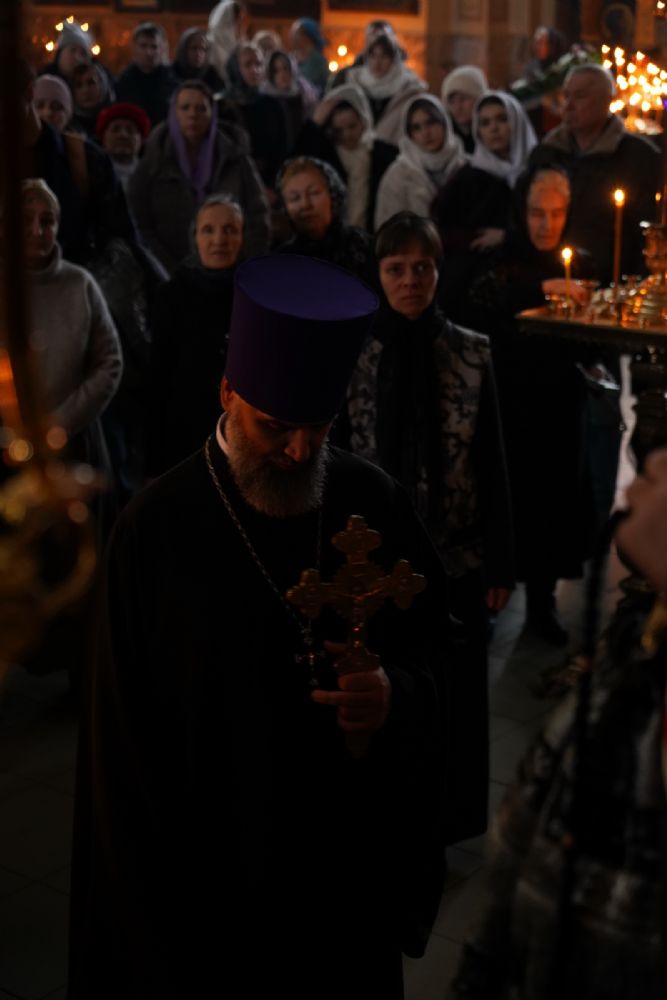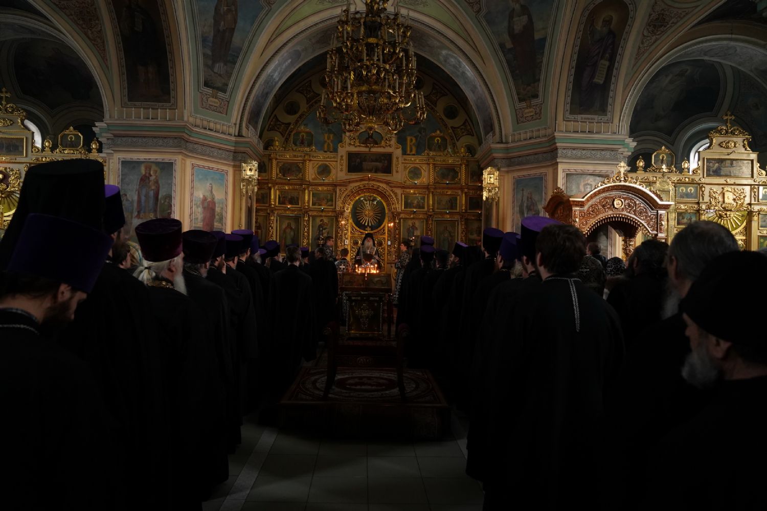 После пения великого прокимна и закрытия Царских врат духовенство переоблачилось в великопостные черные ризы. В конце вечерни была прочитана молитва преподобного Ефрема Сирина «Господи и Владыко живота моего…». Затем владыка прочитал молитвы на начало Великого поста и обратился к участникам богослужения с архипастырским словом и коленопреклоненно испросил у духовенства и всей паствы прощения. После чего был совершен чин прощения, во время которого архипастырь и духовенство, согласно благочестивой традиции, испросили прощения друг у друга и у народа.