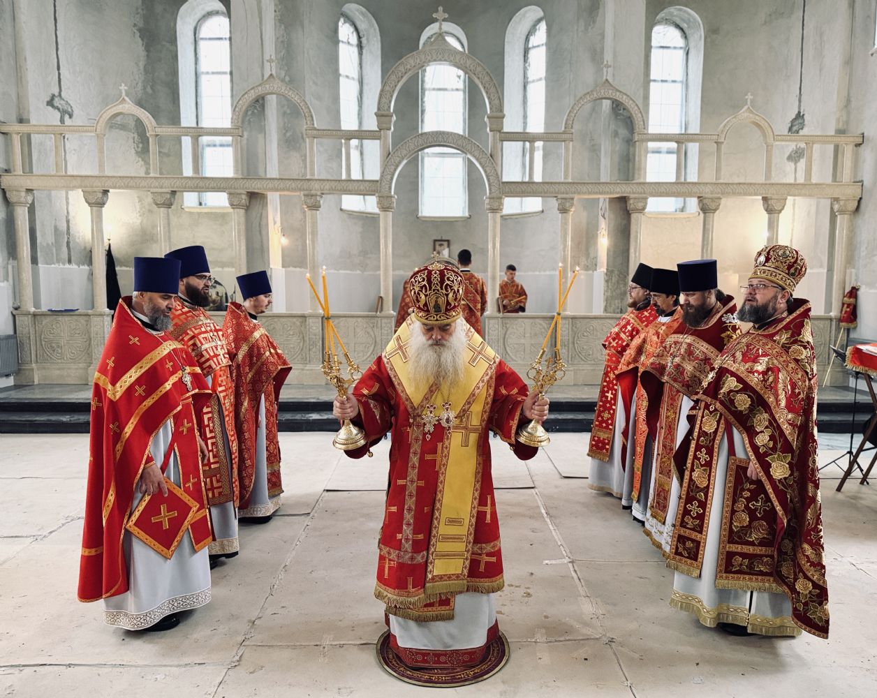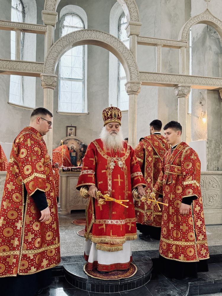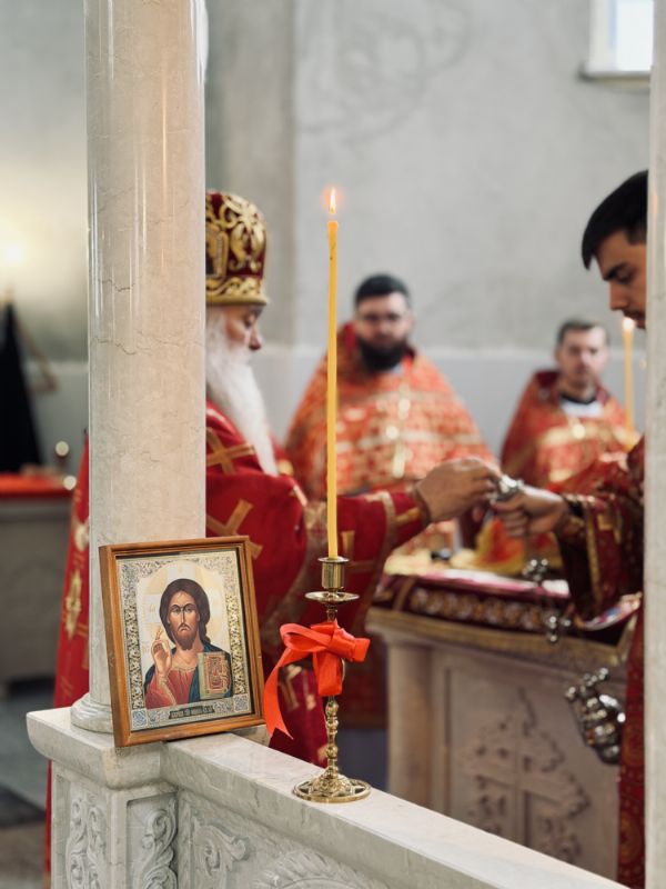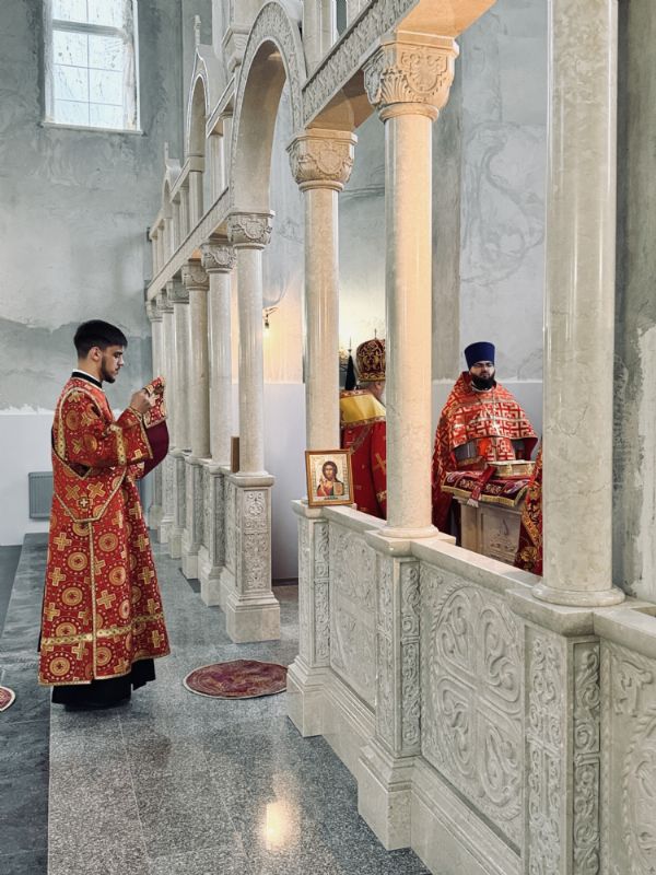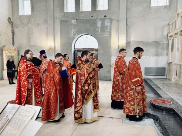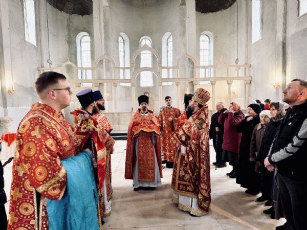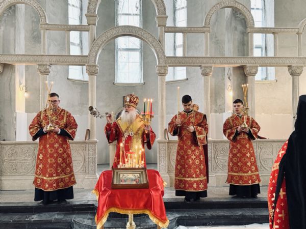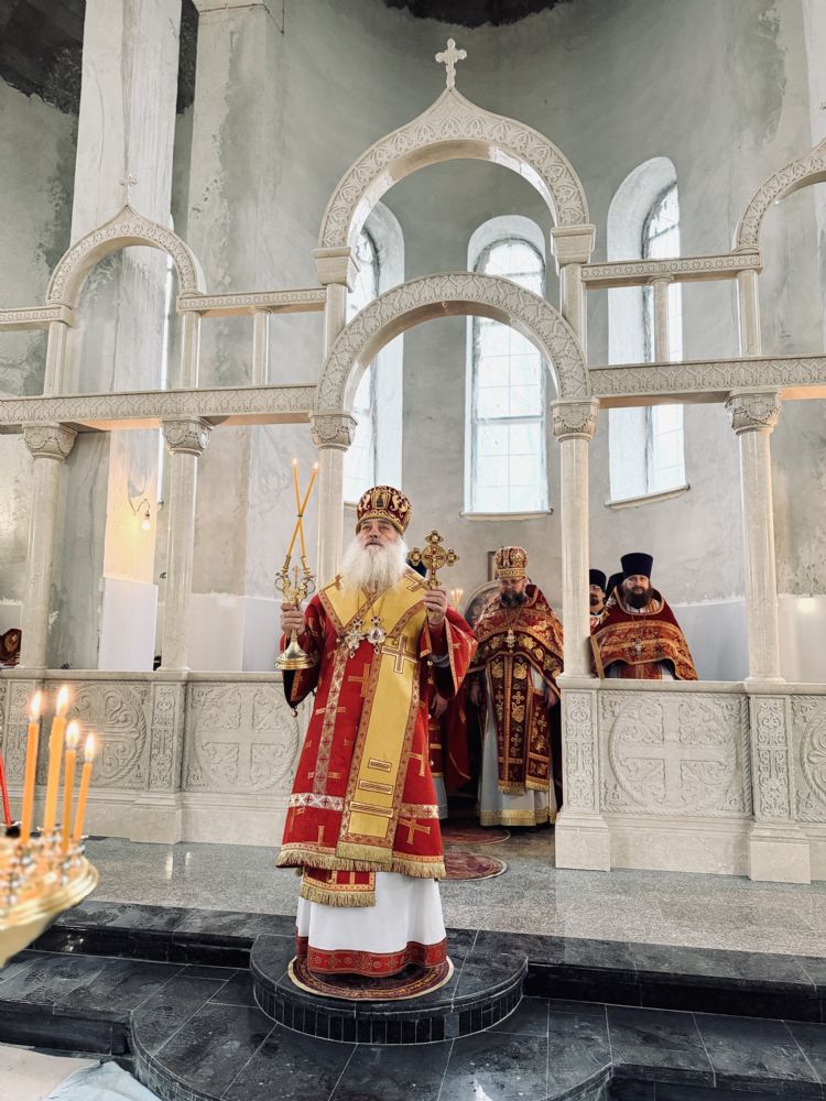 13 апреля 2026 г., в понедельник Светлой седмицы, митрополит Барнаульский и Алтайский Сергий совершил первую Литургию в строящемся Спасском соборе г. Барнаула.