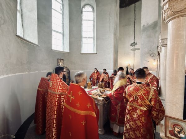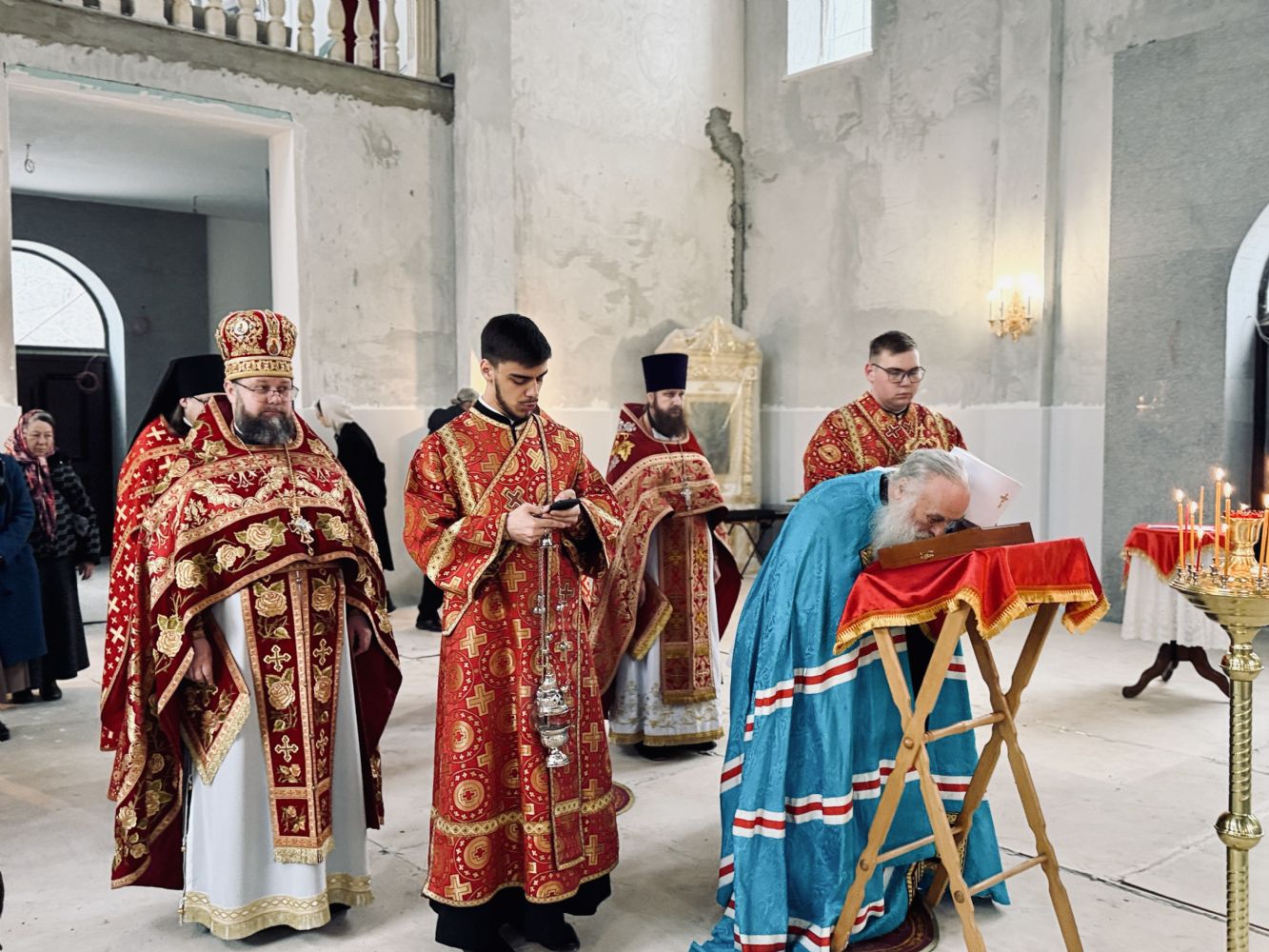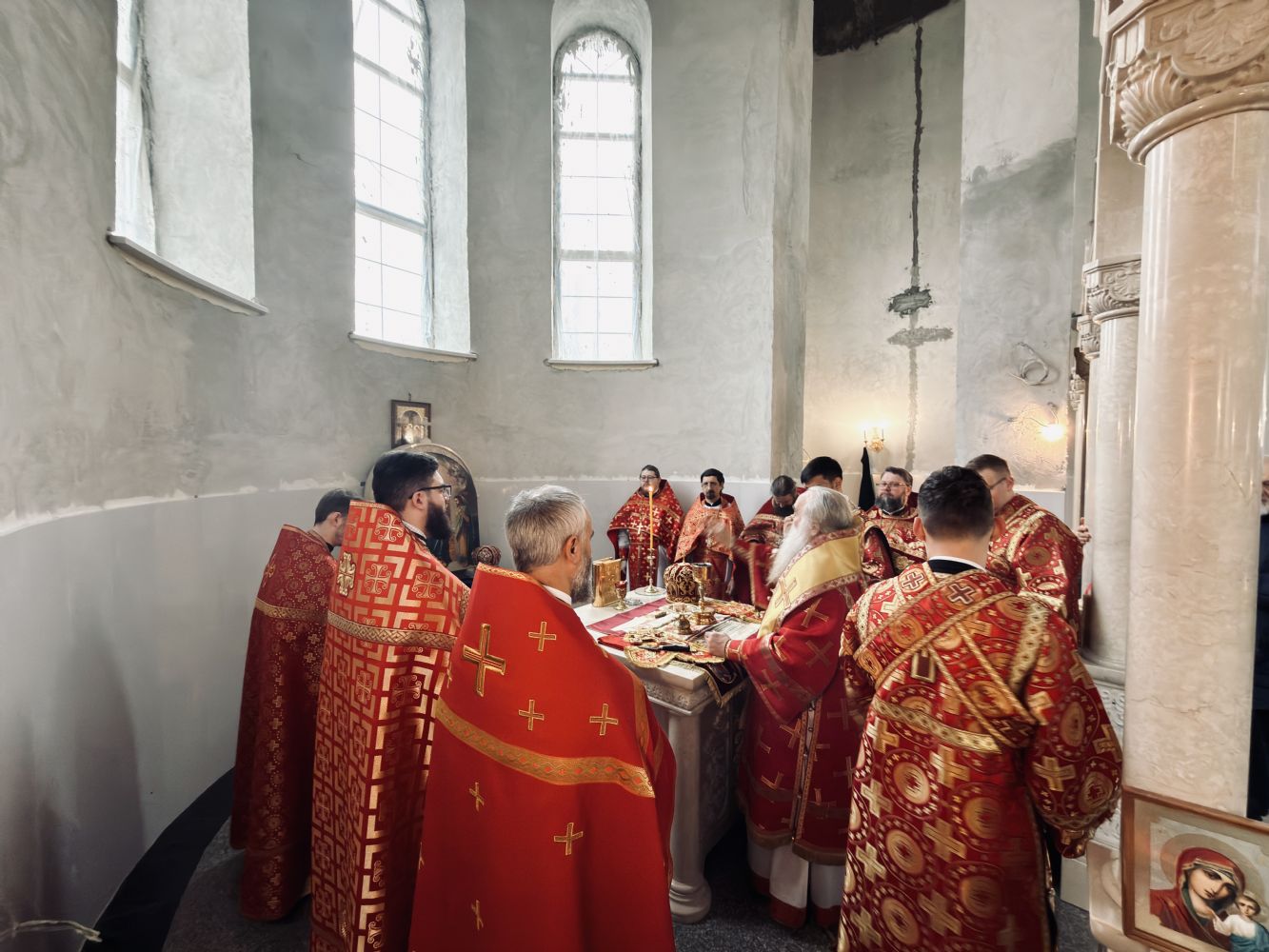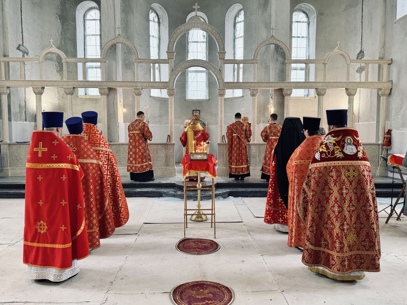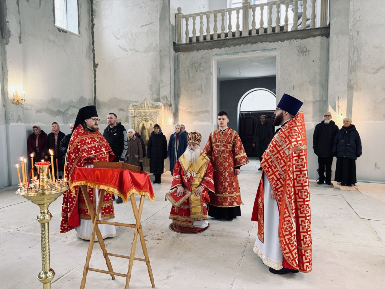 13 апреля 2026 г., в понедельник Светлой седмицы, митрополит Барнаульский и Алтайский Сергий совершил первую Литургию в строящемся Спасском соборе г. Барнаула.