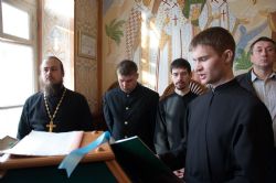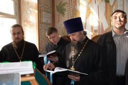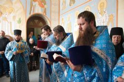 Богослужебные песнопения исполнял мужской хор Барнаульской духовной семинарии под управлением регента иерея Димитрия Котова.