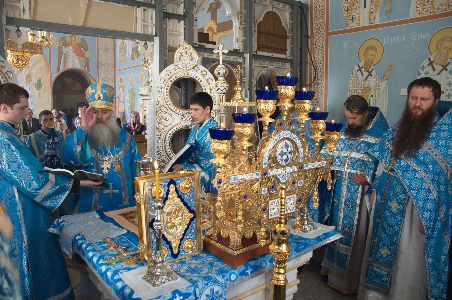 В праздник Благовещения Пресвятой Богородицы митрополит Сергий совершил Литургию в Благовещенском храме Барнаула