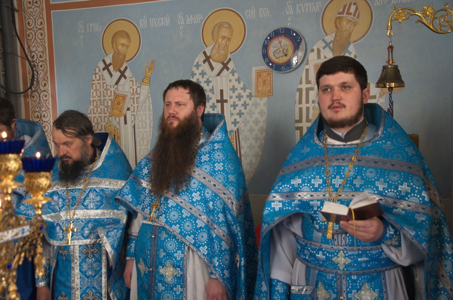 Архипастырю сослужили секретарь Барнаульской епархии, настоятель Александро-Невского собора иерей Андрей Басов; настоятель храма Иоанна Богослова протоиерей Георгий Крейдун; настоятель Петропавловского храма пос. Южный протоиерей Константин Метельницкий; благочинный Заринского округа протоиерей Андрей Ушаков; благочинный Белоярского округа протоиерей Вячеслав Данькин; благочинный Барнаульского округа иерей Олег Голубитских; ключарь Свято-Димитриевского храма Барнаула иерей Владимир Стуров; настоятель Казанского храма с. Власиха иерей Константин Алексеев, иерей Тимофей Самодинов, протодиакон Владимир Черных и иеродиакон Сергий (Логинов).