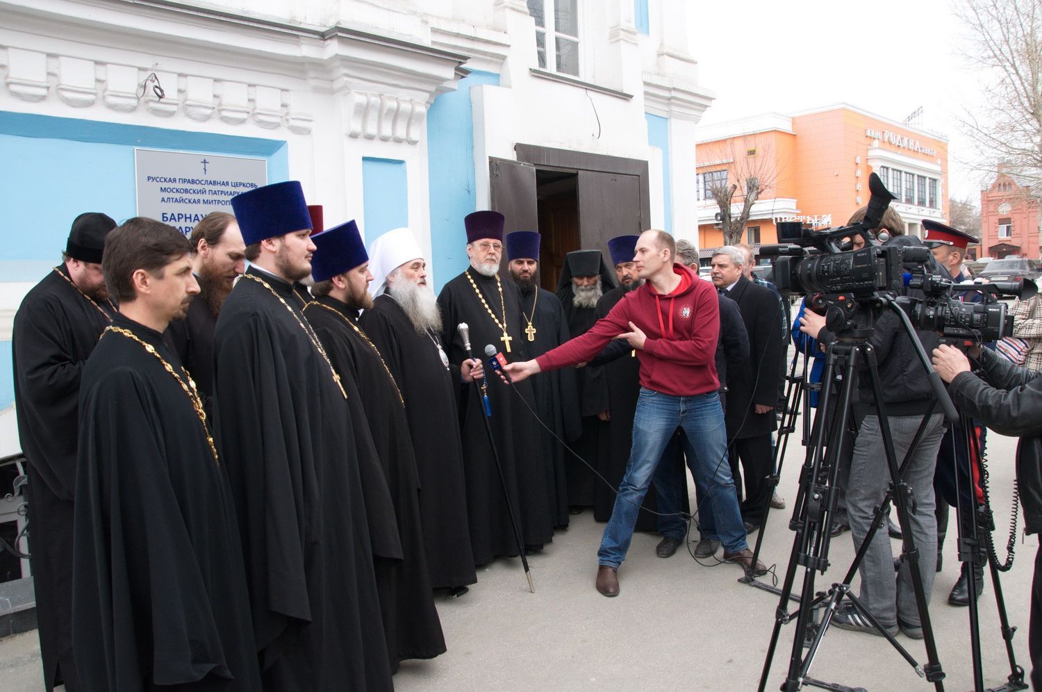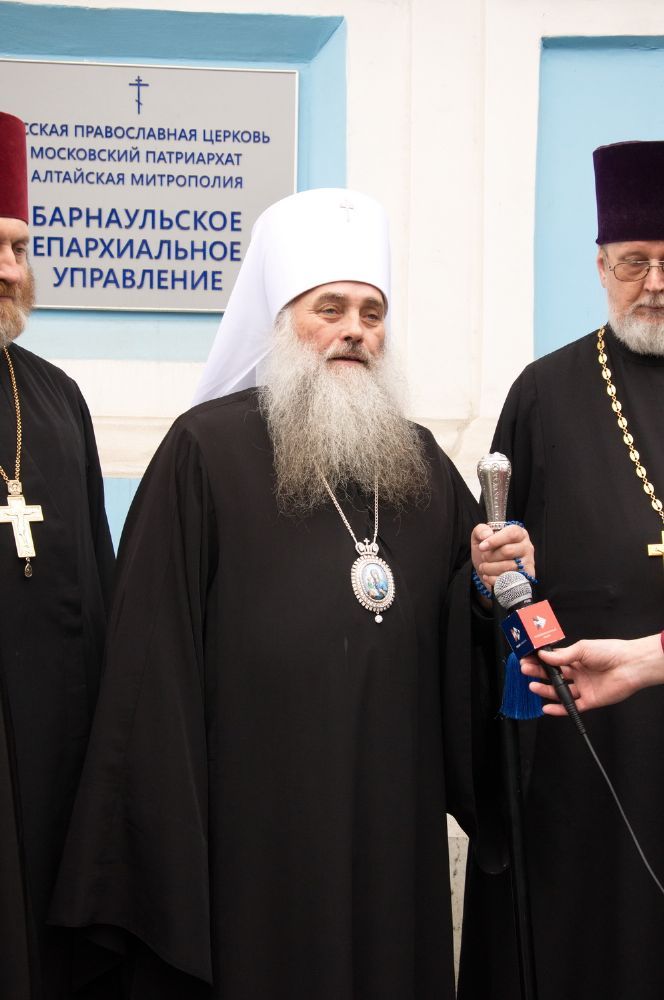 В праздник Благовещения Пресвятой Богородицы, 7 апреля, Божественную литургию в домовом Благовещенском храме возглавил митрополит Барнаульский и Алтайский Сергий. Благовещенский домовой храм находится в здании нового епархиального управления на проспекте Ленина, 17, где в начале прошлого века располагалось Барнаульское духовное училище, а до недавнего времени - ряд отделов городской администрации. Два года назад здание было возвращено Барнаульской епархии. Сейчас там идут ремонтные работы.