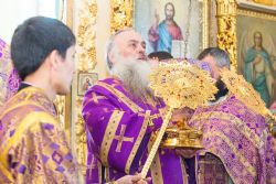 Владыка Сергий рассказал прихожанам, что Иисус Христос в этот день преподал нам свое Тело пречистое и свою Кровь, как великий дар общения с Богом. Дар, который делает нас вечными. Он сказал: кто будет причащаться Тела и Крови Моих, тот будет иметь в себе жизнь Вечную, а кто не будет причащаться — тот не будет иметь.