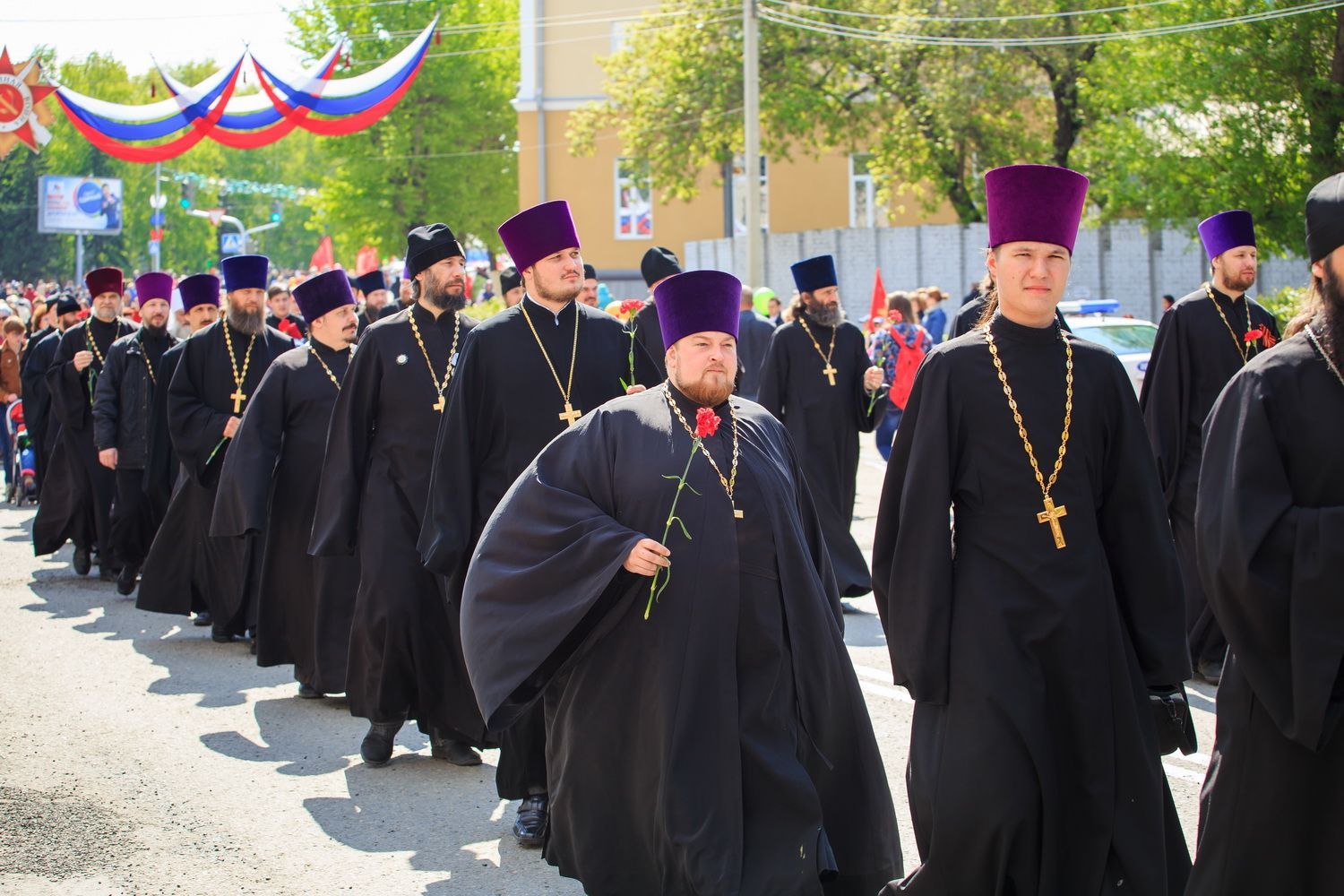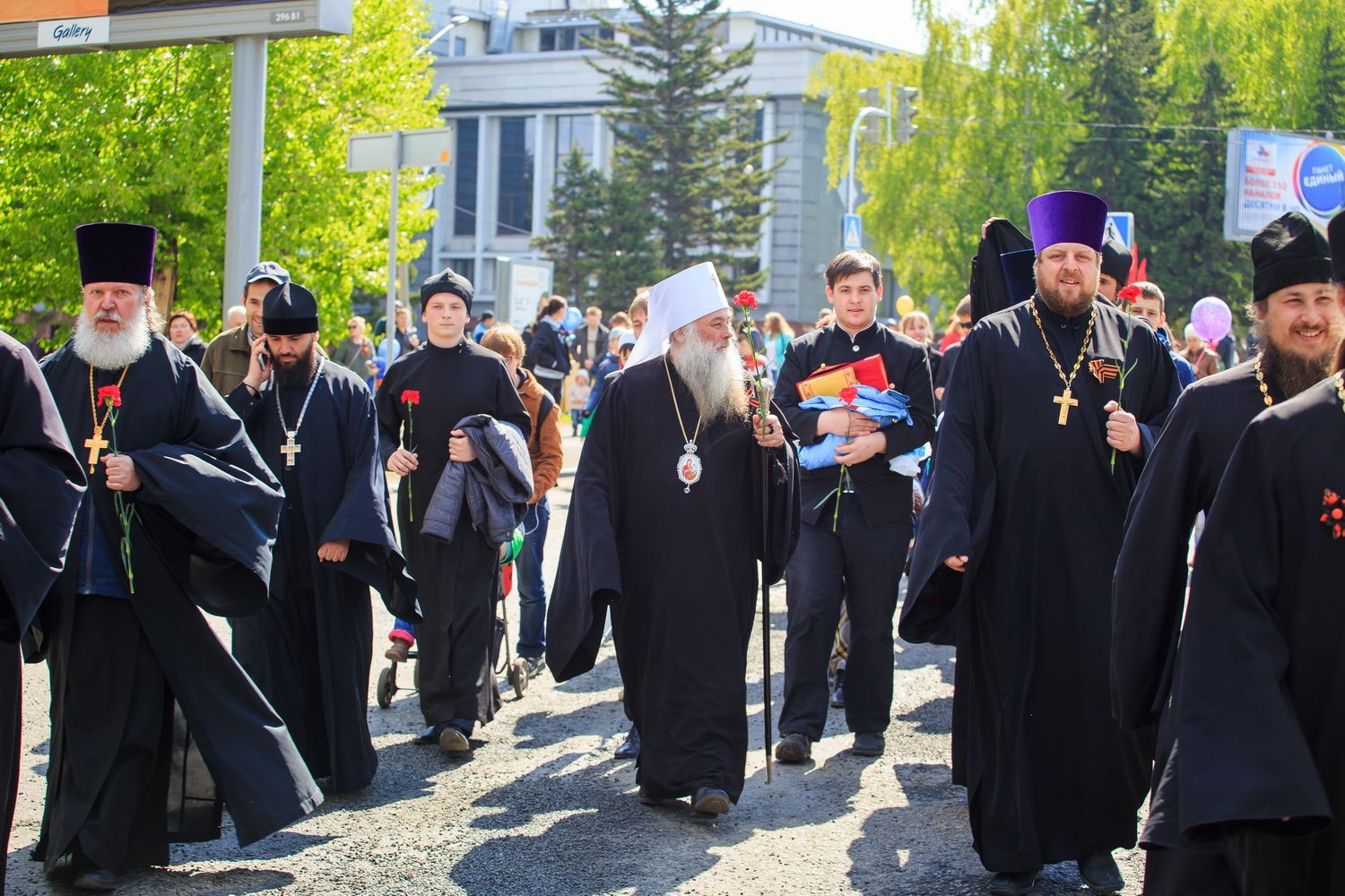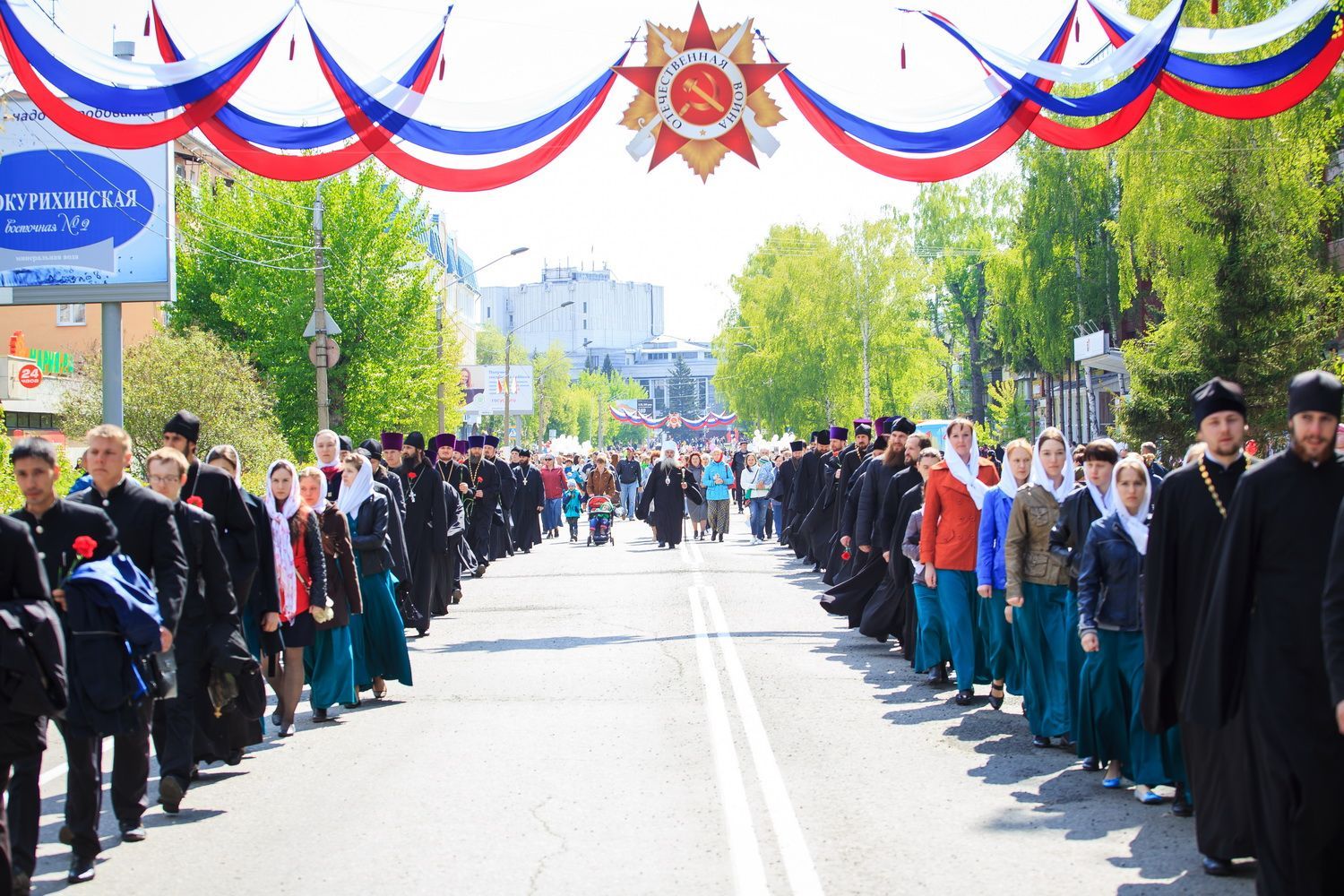 В краевой столице главные события в честь Дня Победы развернулись у Мемориала Славы, к которому духовенство Барнаульской епархии во главе с Высокопреосвященным Сергием, митрополитом Барнаульским и Алтайским, совершило мемориальное шествие. В нем приняли участие настоятель Александро-Невского Собора г.Барнаула протоиерей Андрей Басов и духовенство Собора.