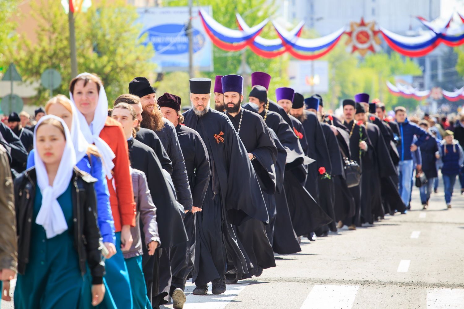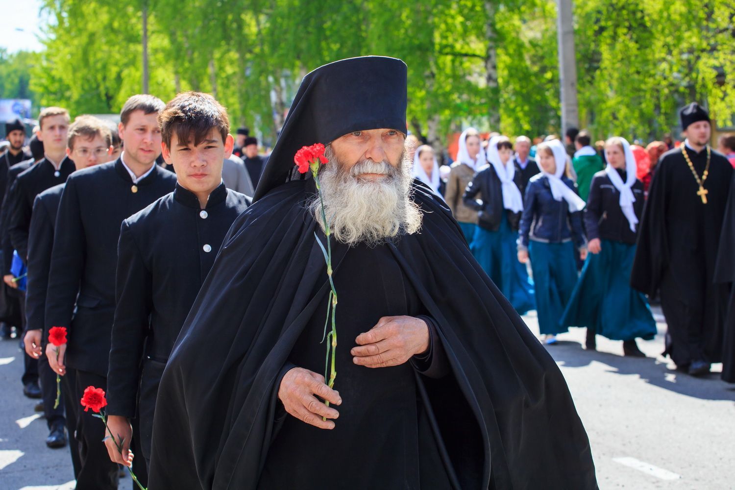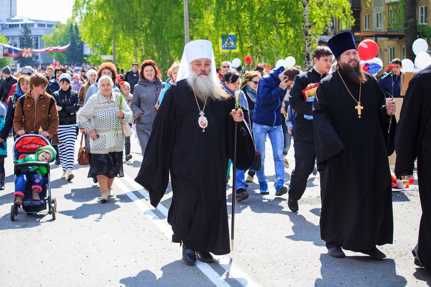 В краевой столице главные события в честь Дня Победы развернулись у Мемориала Славы, к которому духовенство Барнаульской епархии во главе с Высокопреосвященным Сергием, митрополитом Барнаульским и Алтайским, совершило мемориальное шествие. В нем приняли участие настоятель Александро-Невского Собора г.Барнаула протоиерей Андрей Басов и духовенство Собора.