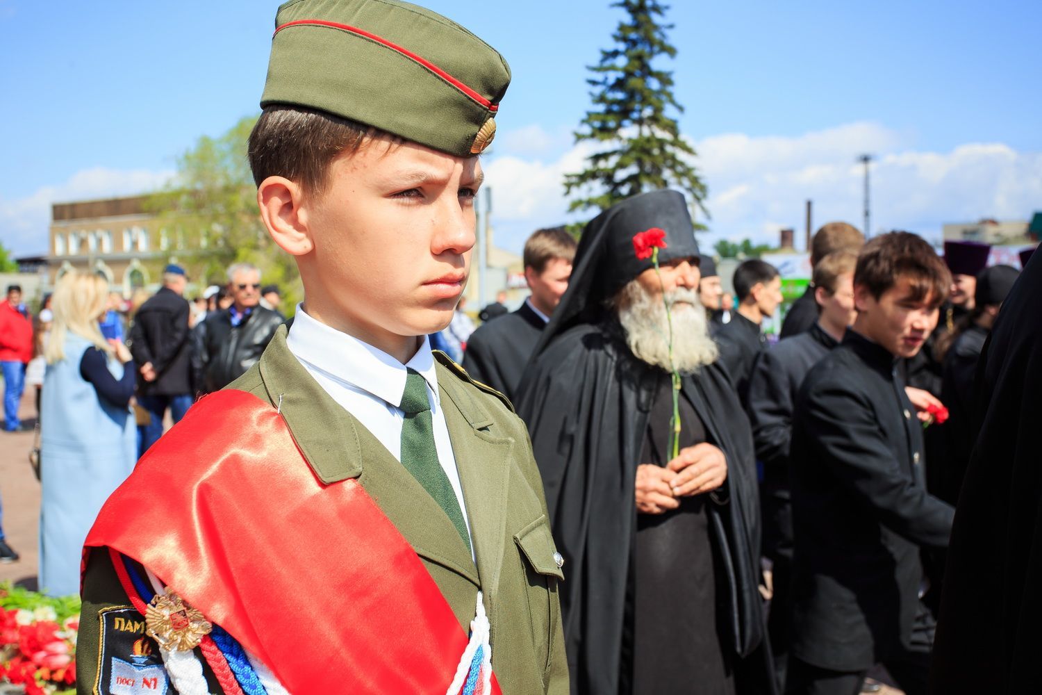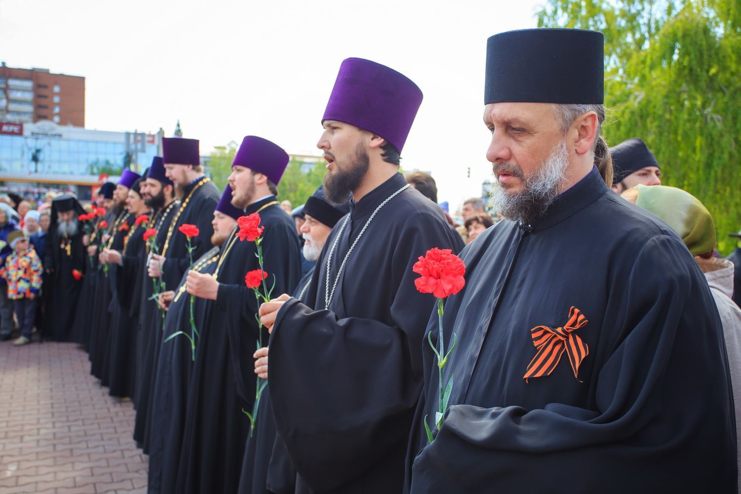 Перед возложением венка и цветов была возглашена «Вечная память» «вождям и воинам, на поле брани жизнь свою положившим, от ран и глада скончавшимся, в пленении и горьких работах невинно умученным и убиенным и всем Победы ради потрудившимся».
