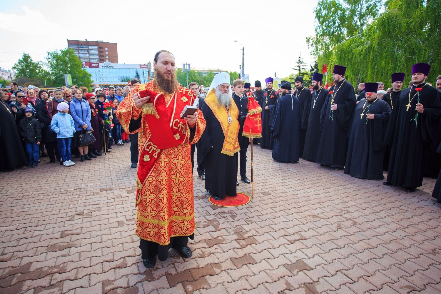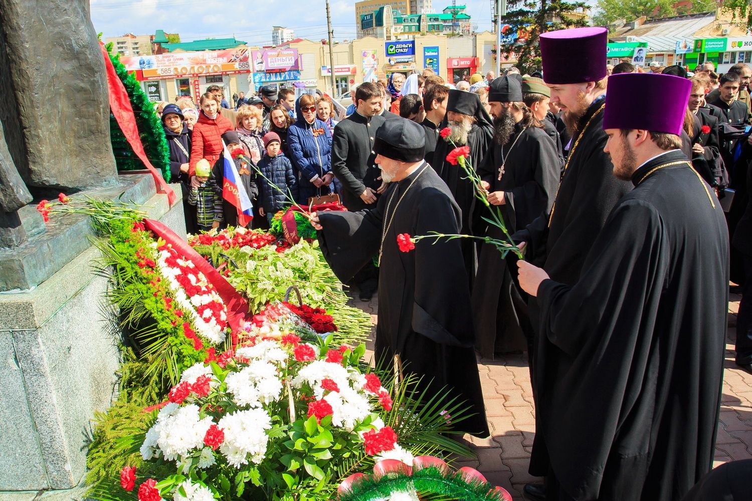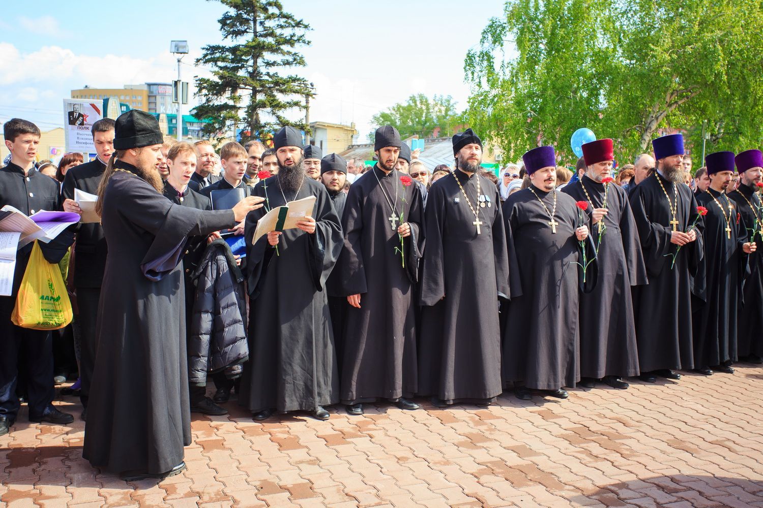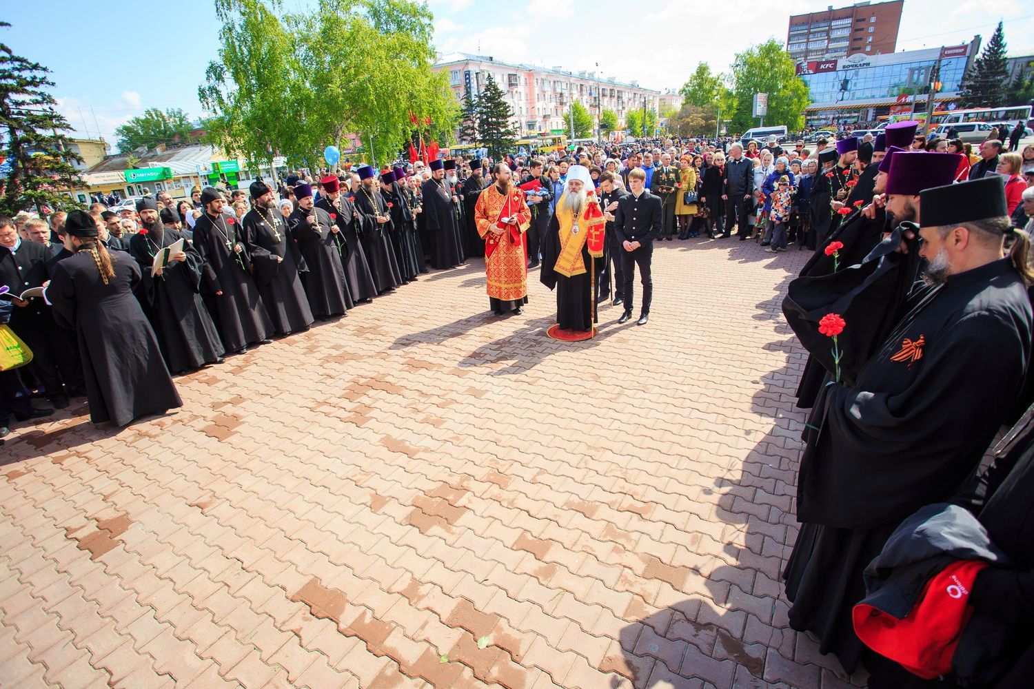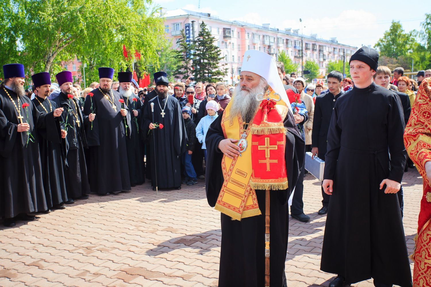 По окончании заупокойного богослужения священнослужители пропели тропарь праздника Пасхи, а глава Алтайской митрополии обратился к собравшимся со словами поздравления по случаю Дня Великой Победы.