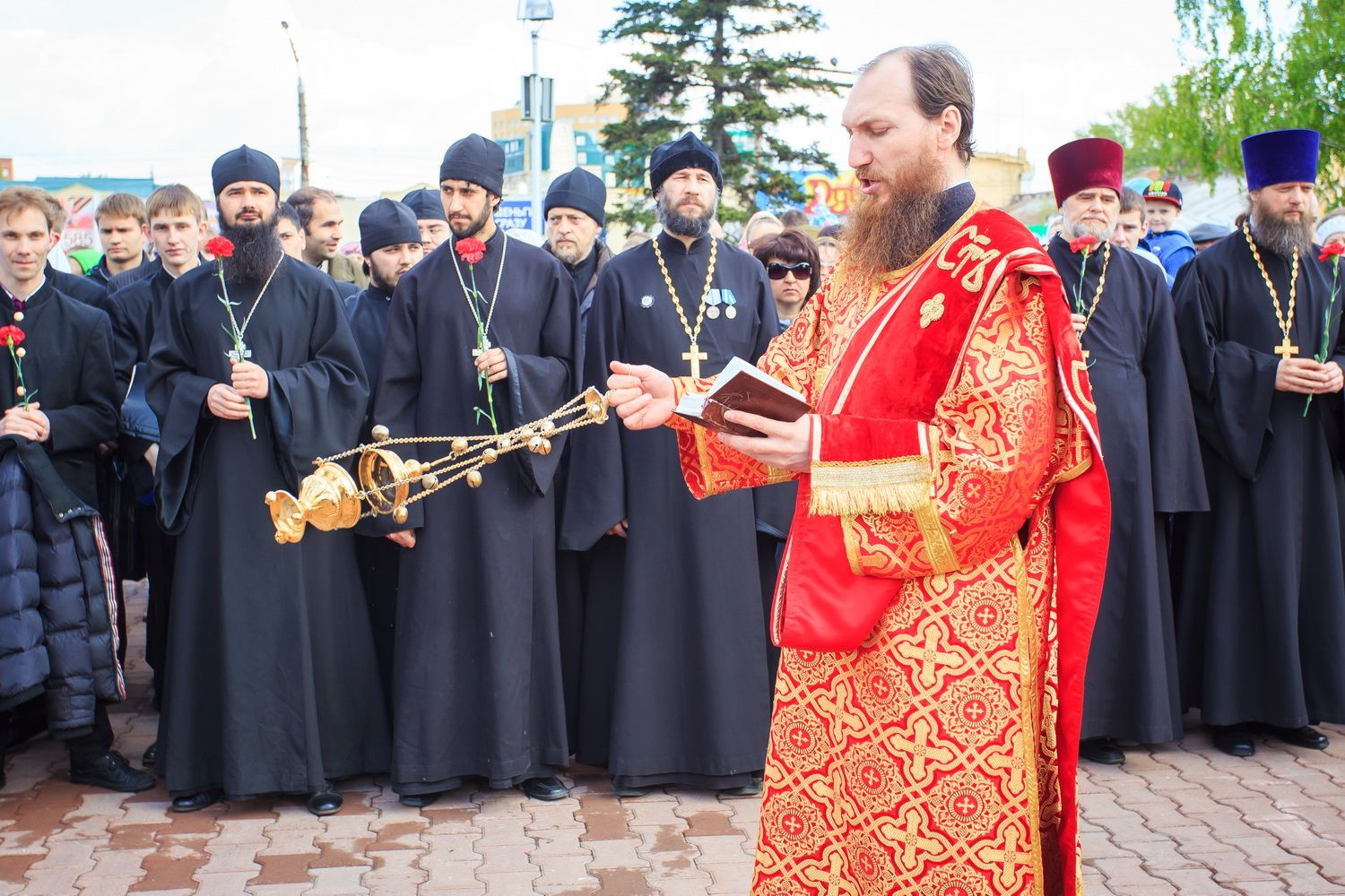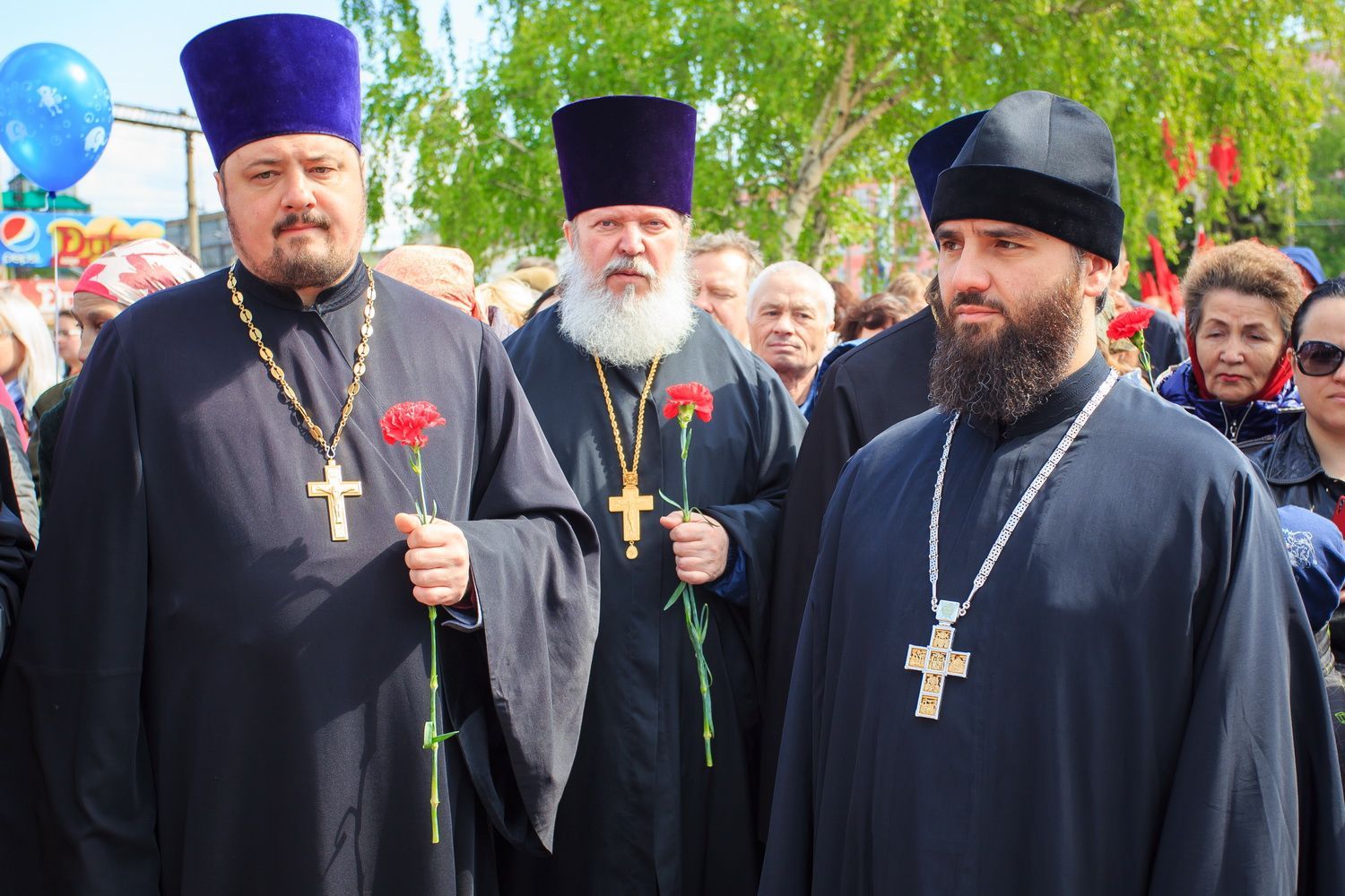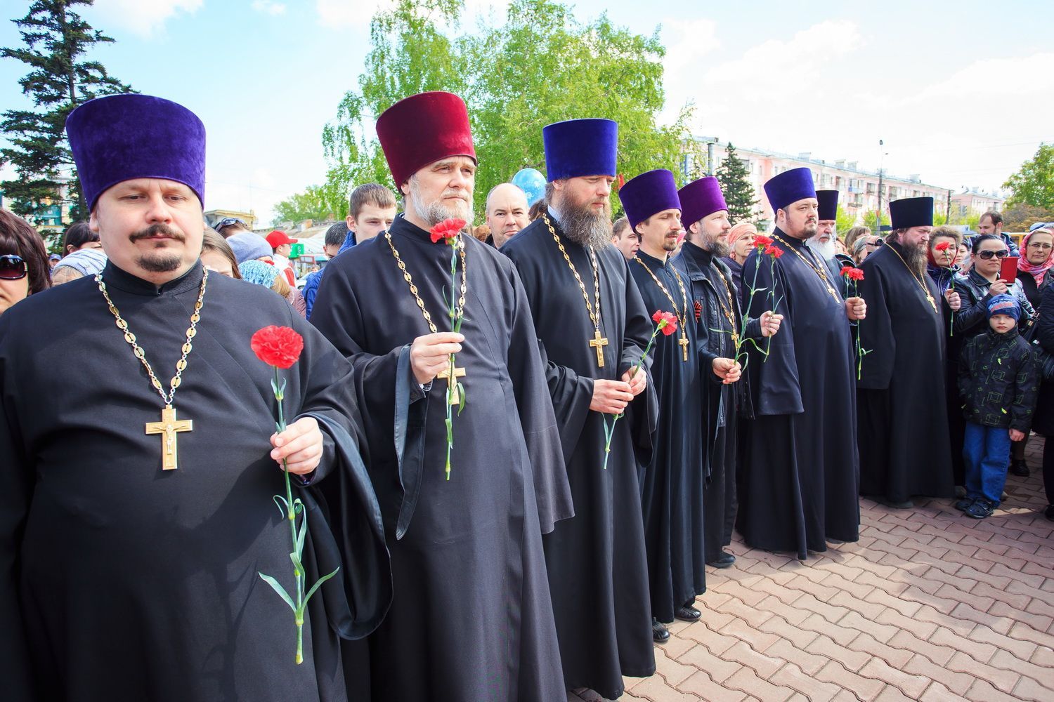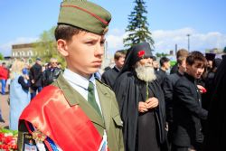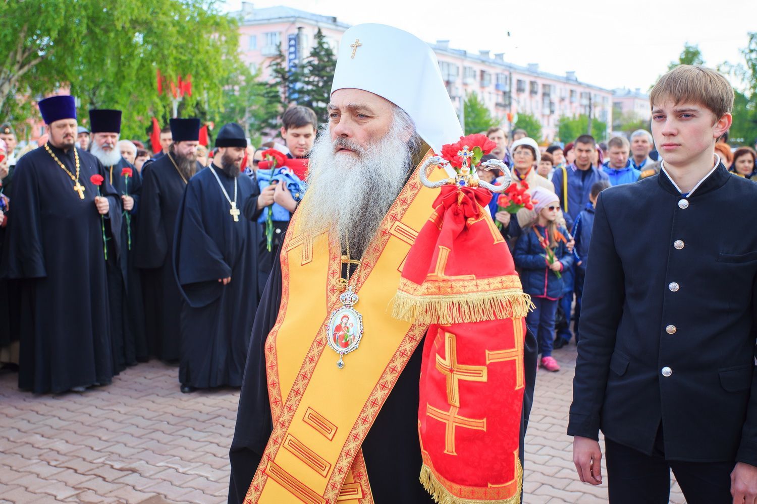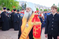 По окончании заупокойного богослужения священнослужители пропели тропарь праздника Пасхи, а глава Алтайской митрополии обратился к собравшимся со словами поздравления по случаю Дня Великой Победы.