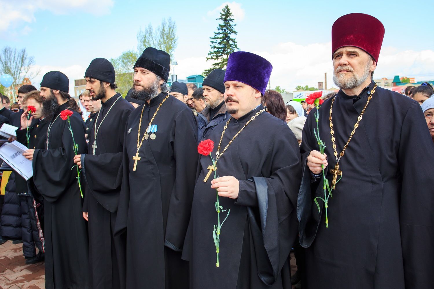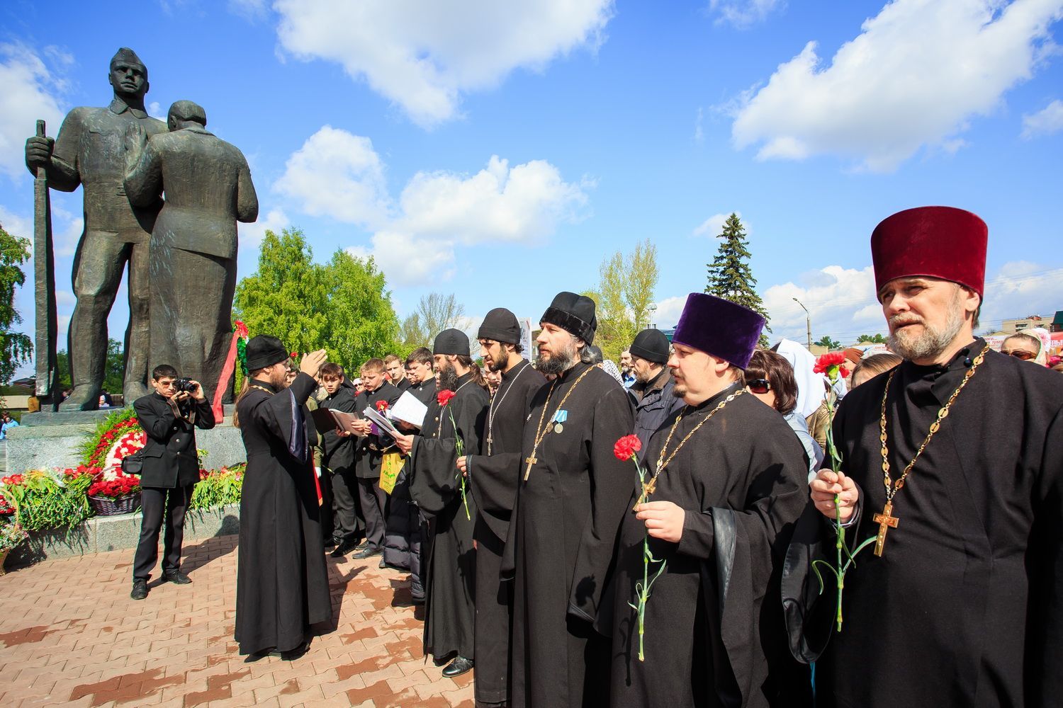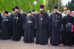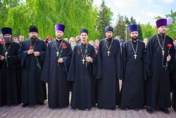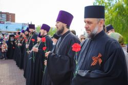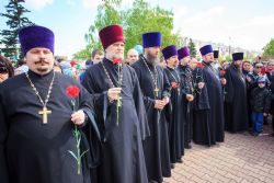 Затем священнослужители в своих населенных пунктах возложили цветы к монументам воинам-героям, а также приняли участие в памятных митингах.
