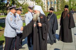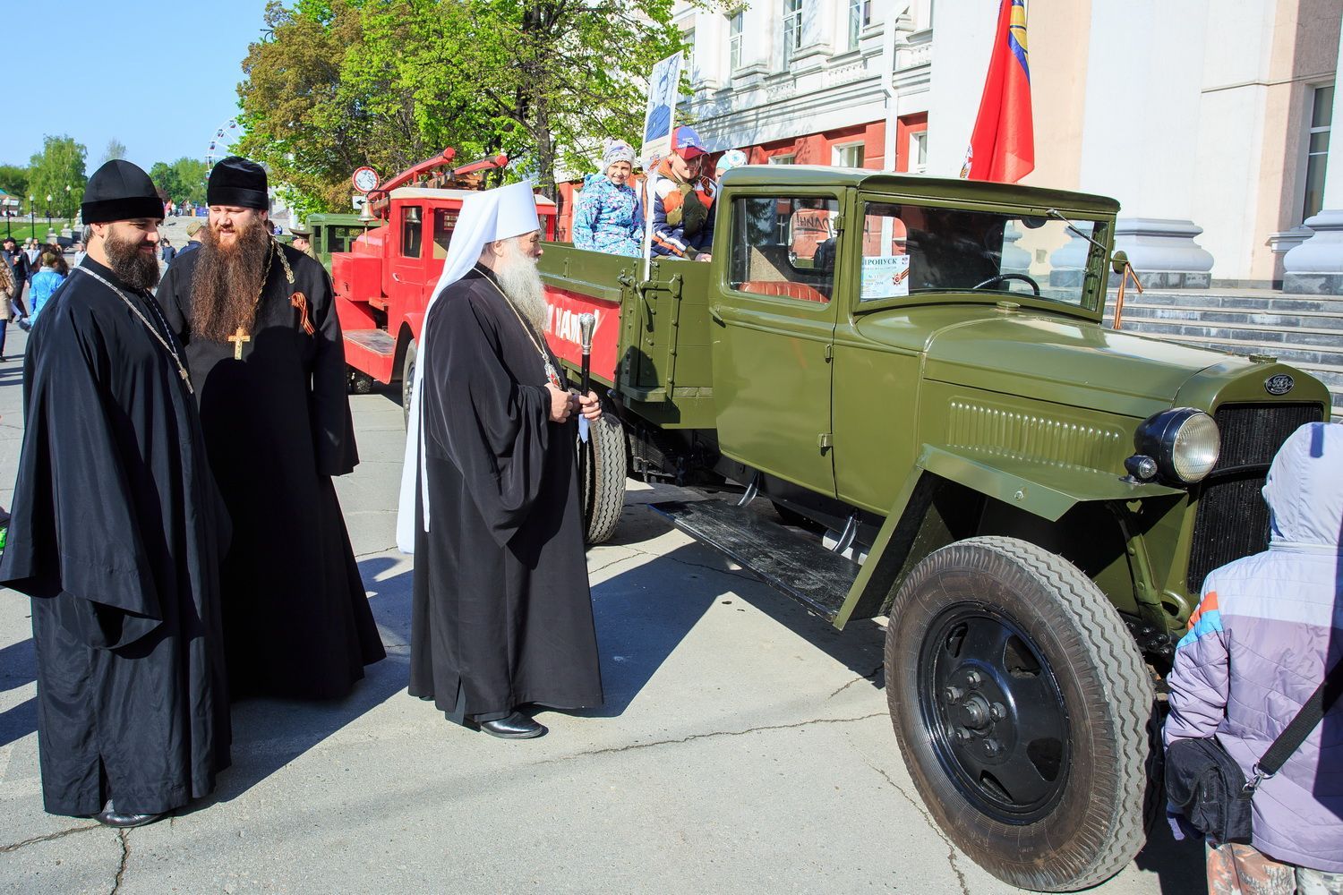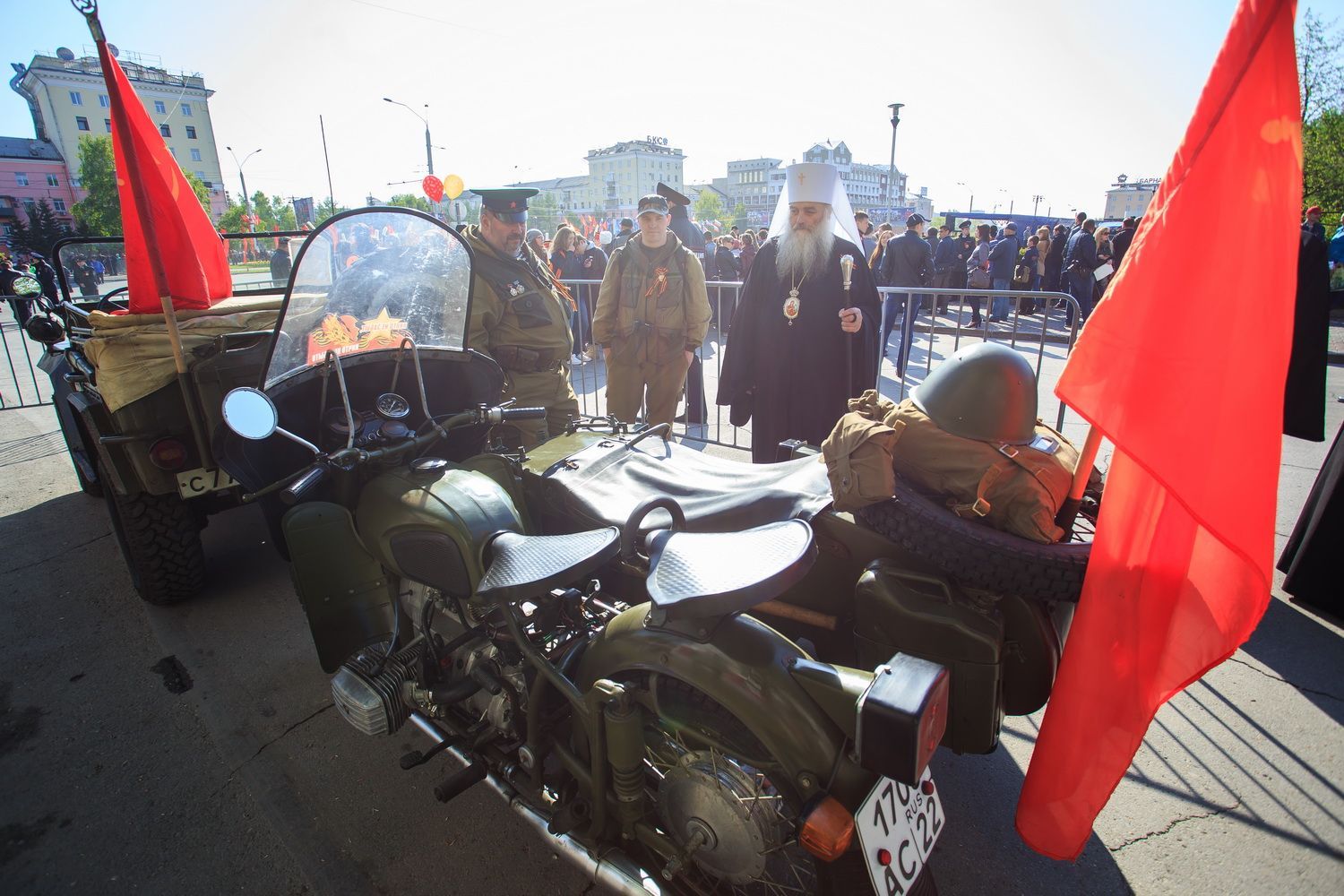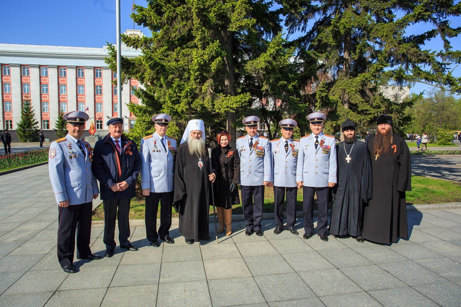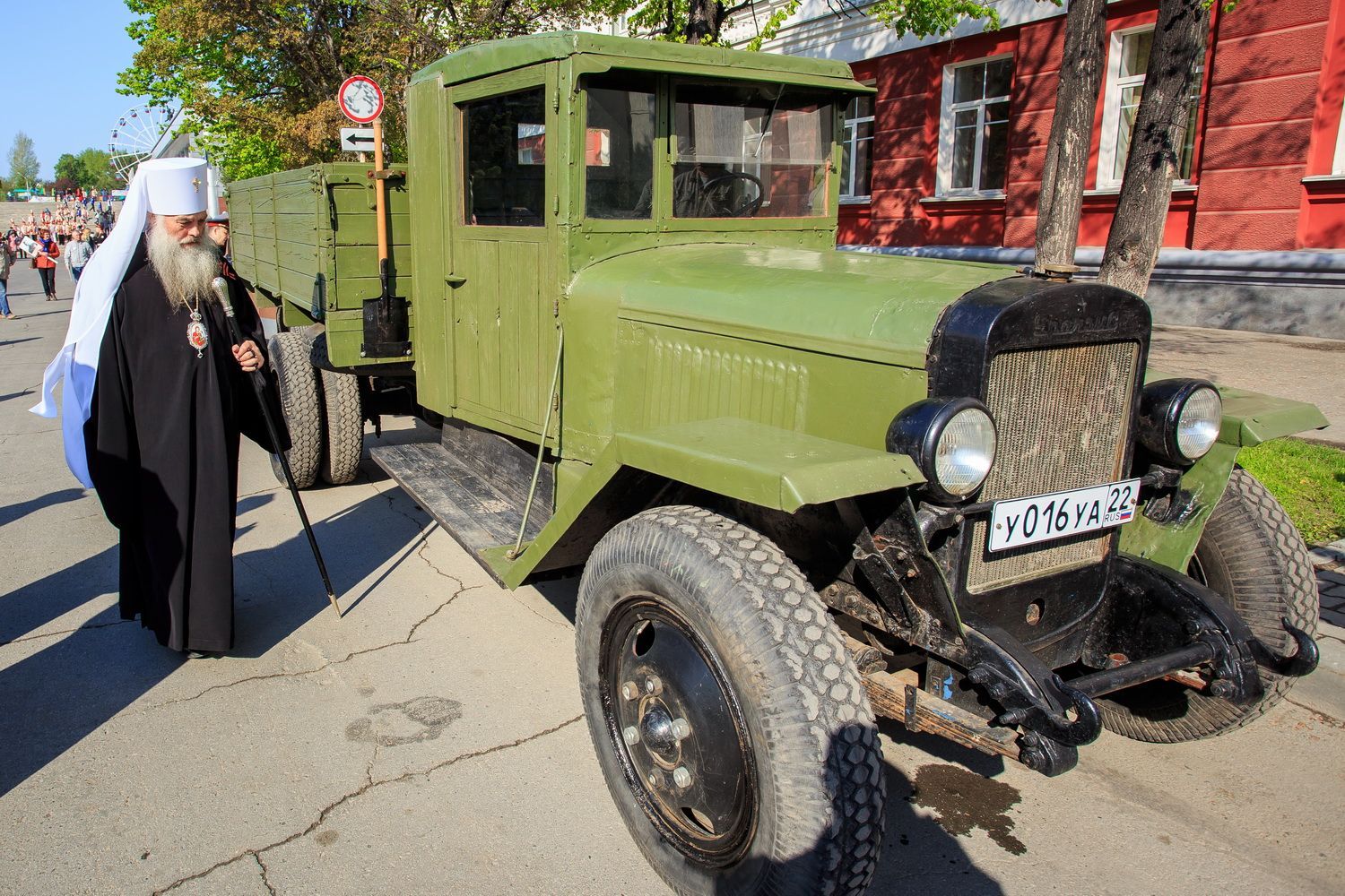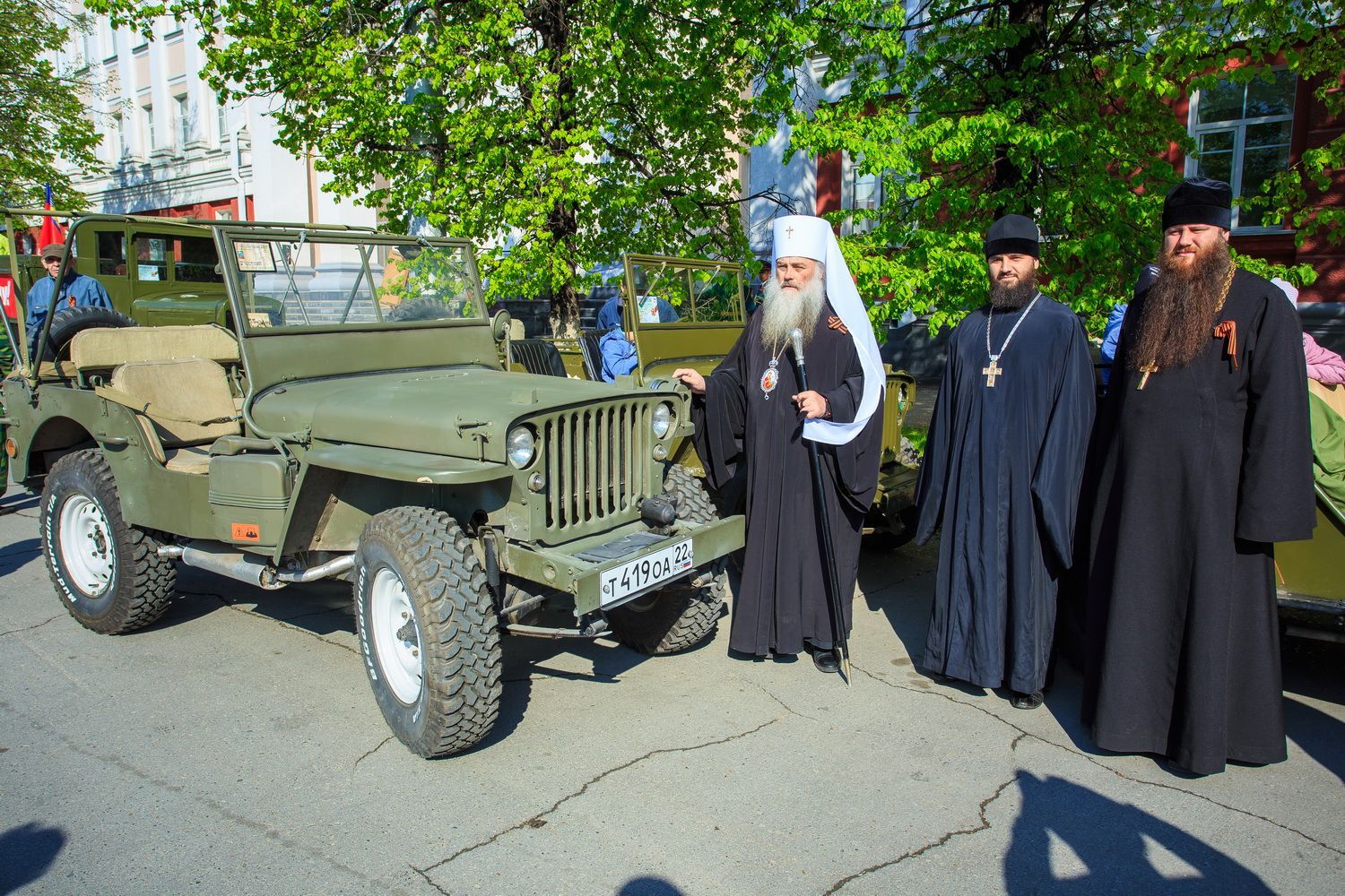 На праздновании присутствовал митрополит Барнаульский и Алтайский Сергий в сопровождении секретаря Барнаульской епархии настоятеля Александро-Невского Собора протоиерея Андрея Басова и эконома епархии иерея Константина Алексеева. Перед началом парада архипастырь ознакомился с выставкой техники времен Великой Отечественной войны.