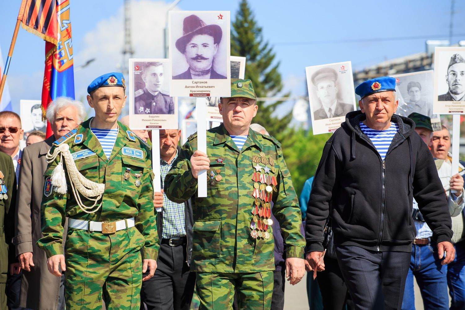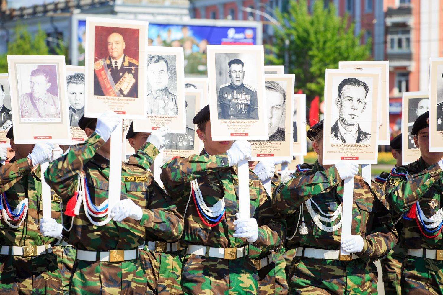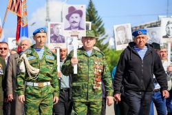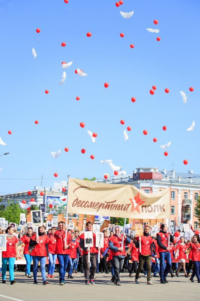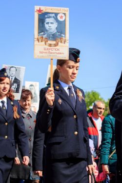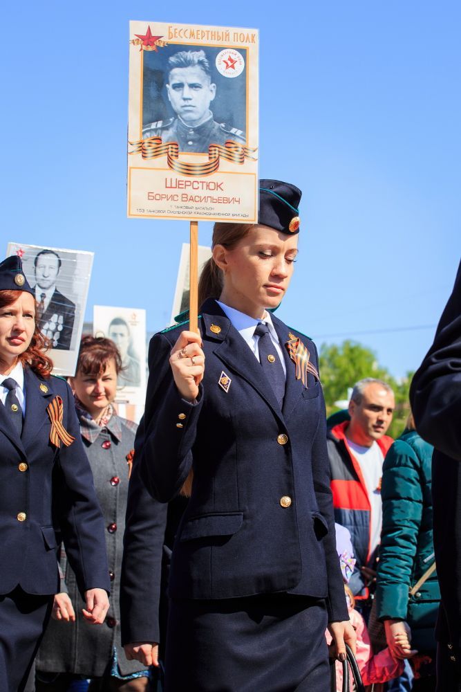 Торжественное шествие венчала многотысячная колонна участников акции «Бессмертный полк». Они держали в руках портреты своих прадедов, дедов и просто родственников, не вернувшихся с войны или не доживших до наших дней. В шествии приняли участие и ветераны Великой Отечественной войны в сопровождении своих детей, внуков, правнуков.