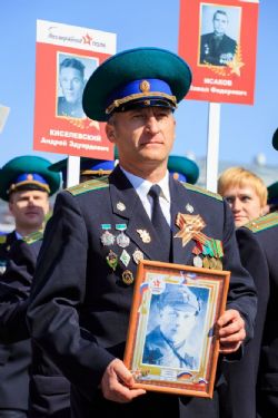 Справка: Акцию «Бессмертный полк» впервые провели в 2012 году по инициативе журналистов Томска. Они обратились с просьбой ко всем, кто чтит память о воинах Великой Отечественной войны, записать своих родственников - ушедших солдат - в «Бессмертный полк» и 9 Мая пройти с портретами отцов и дедов в общей победной колонне. Алтайский край присоединился к акции год спустя. В год 70-летия победы колонна Бессмертного полка прошла по Красной площади. На сегодняшний день акция охватывает 500 городов России и 20 стран мира.