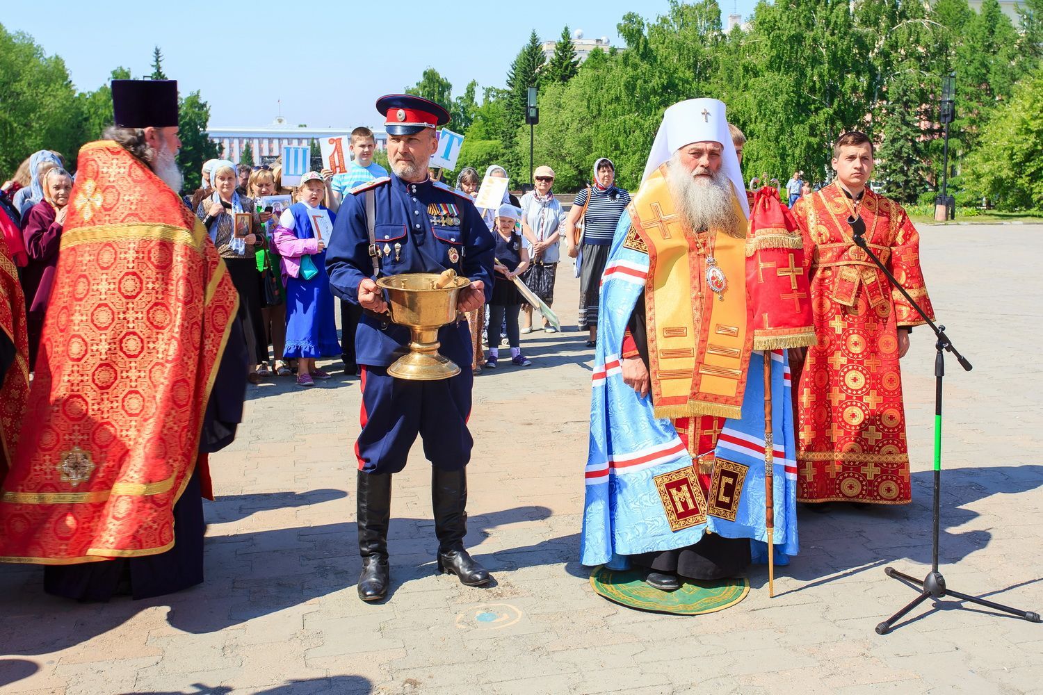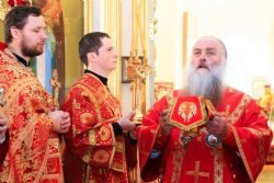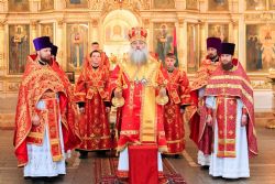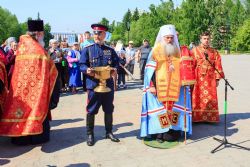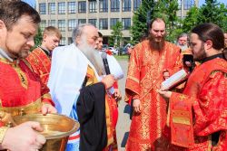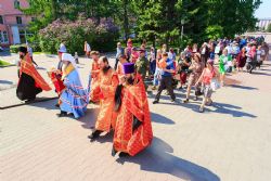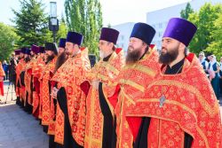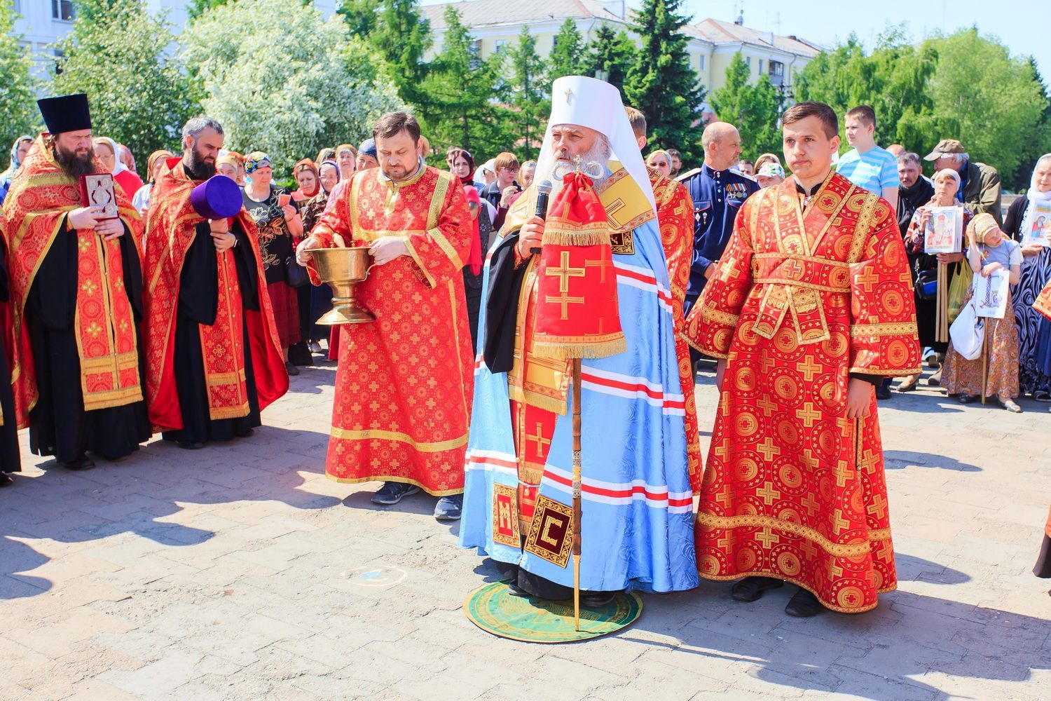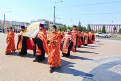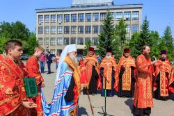 После завершения крестного хода на площади был совершен молебен равноапостольным братьям, подарившим нашему народу слово Божие. Владыка Сергий поздравил всех с праздником и пожелал успехов в любом учении. Особенно он отметил, что братья внесли огромный вклад в развитие славянского общества и его культуры в целом. Письменность, созданная ими в IX веке, позволила запечатлеть лучшие страницы российской истории, биографии великих людей, а распространение знаний, наработанных за многие века славянским народом с помощью письменности, способствовало распространению грамотности всех людей.