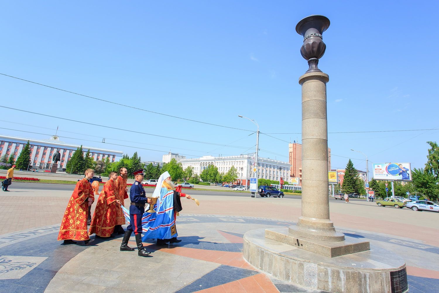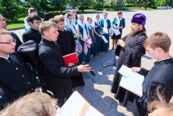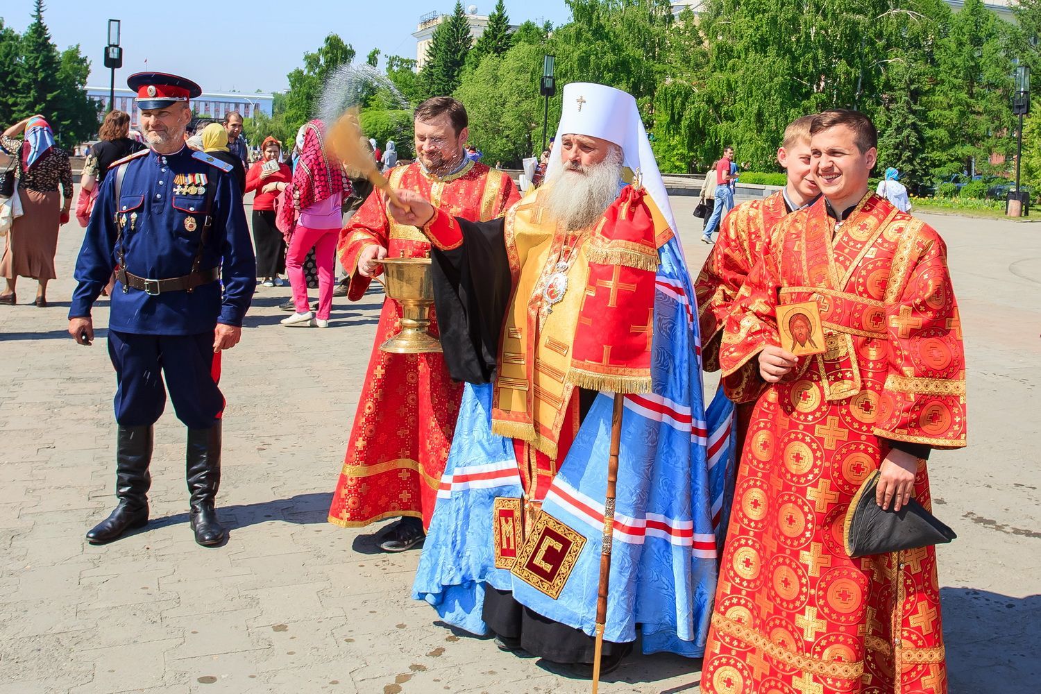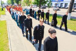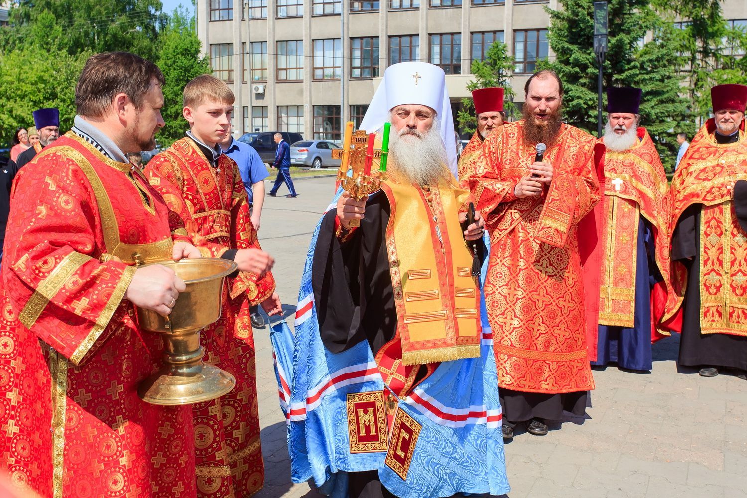 После завершения крестного хода на площади был совершен молебен равноапостольным братьям, подарившим нашему народу слово Божие. Владыка Сергий поздравил всех с праздником и пожелал успехов в любом учении. Особенно он отметил, что братья внесли огромный вклад в развитие славянского общества и его культуры в целом. Письменность, созданная ими в IX веке, позволила запечатлеть лучшие страницы российской истории, биографии великих людей, а распространение знаний, наработанных за многие века славянским народом с помощью письменности, способствовало распространению грамотности всех людей.