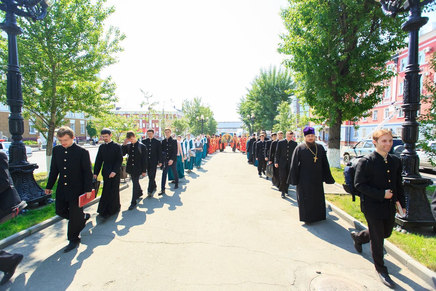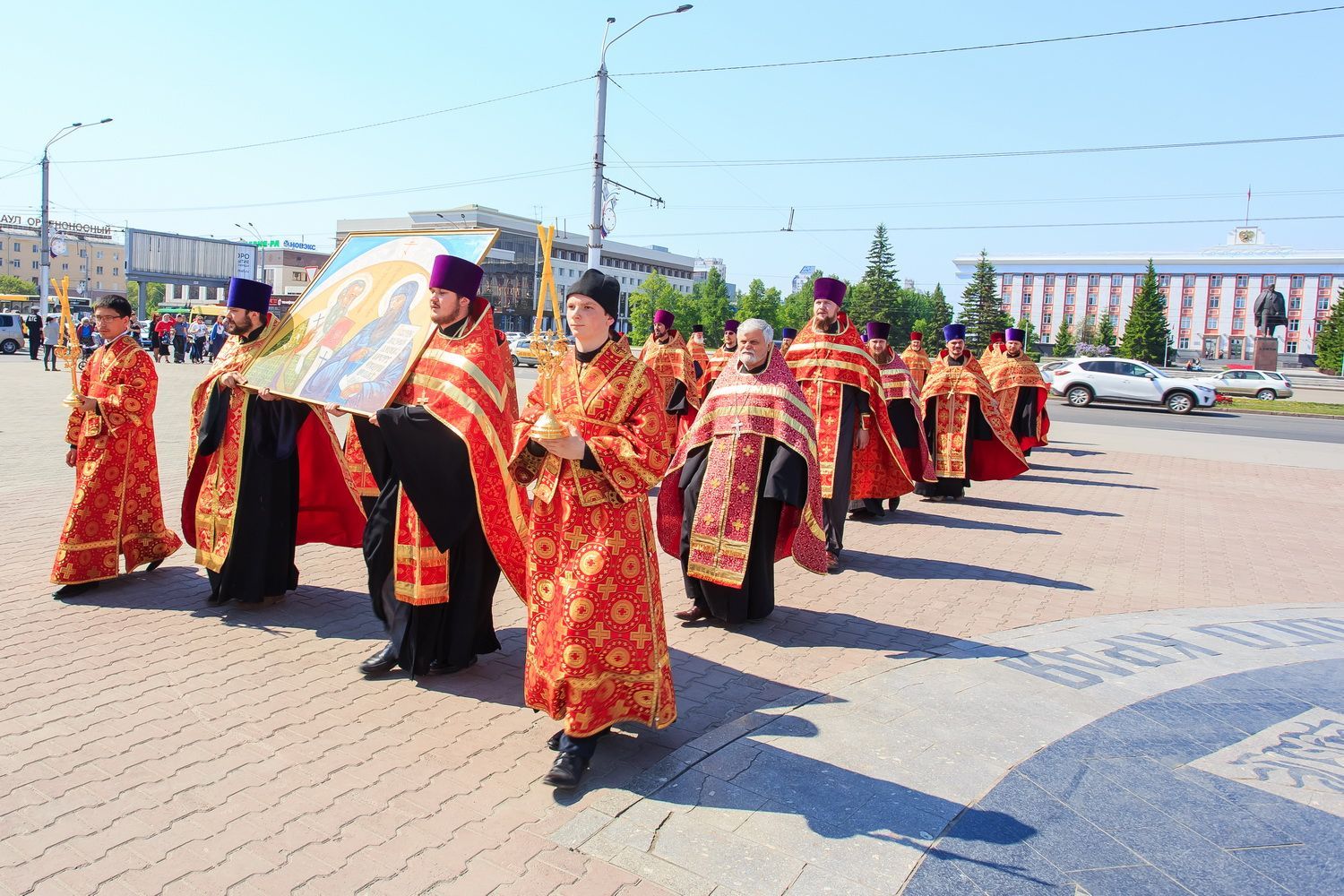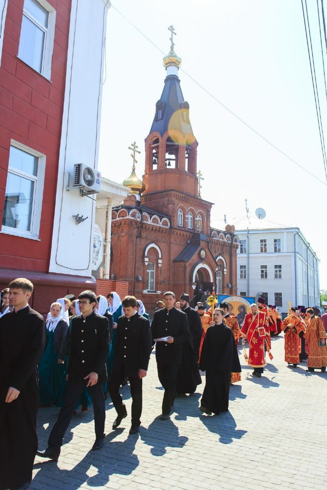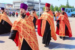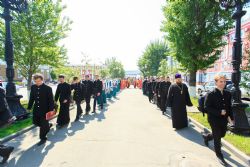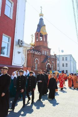 После богослужения, в рамках праздничных мероприятий, посвященных Дню славянской письменности и культуры, от храма до площади Ветеранов по главному проспекту краевой столицы прошел крестный ход. Участие в нем приняли духовенство и миряне Алтайской митрополии.