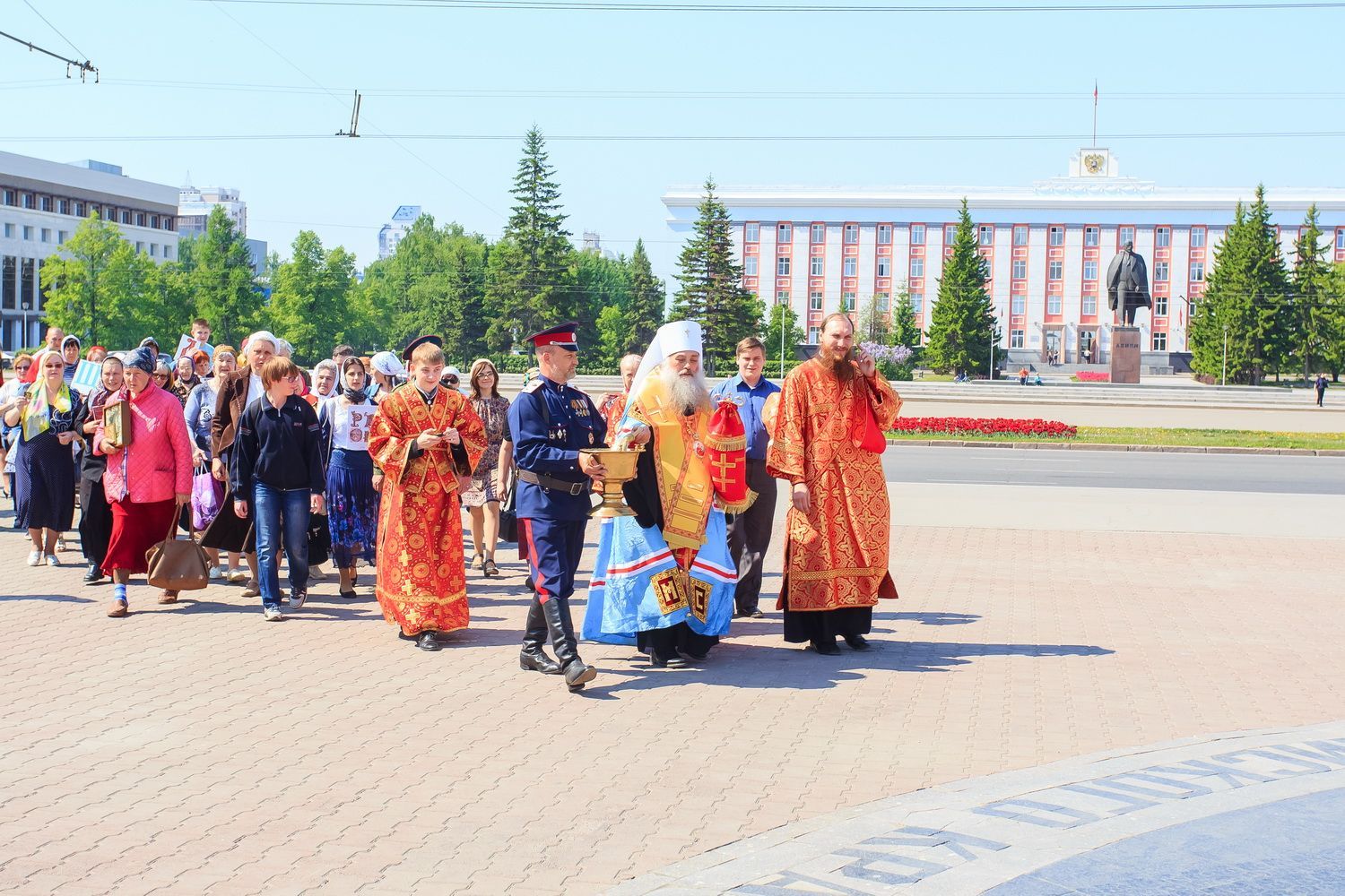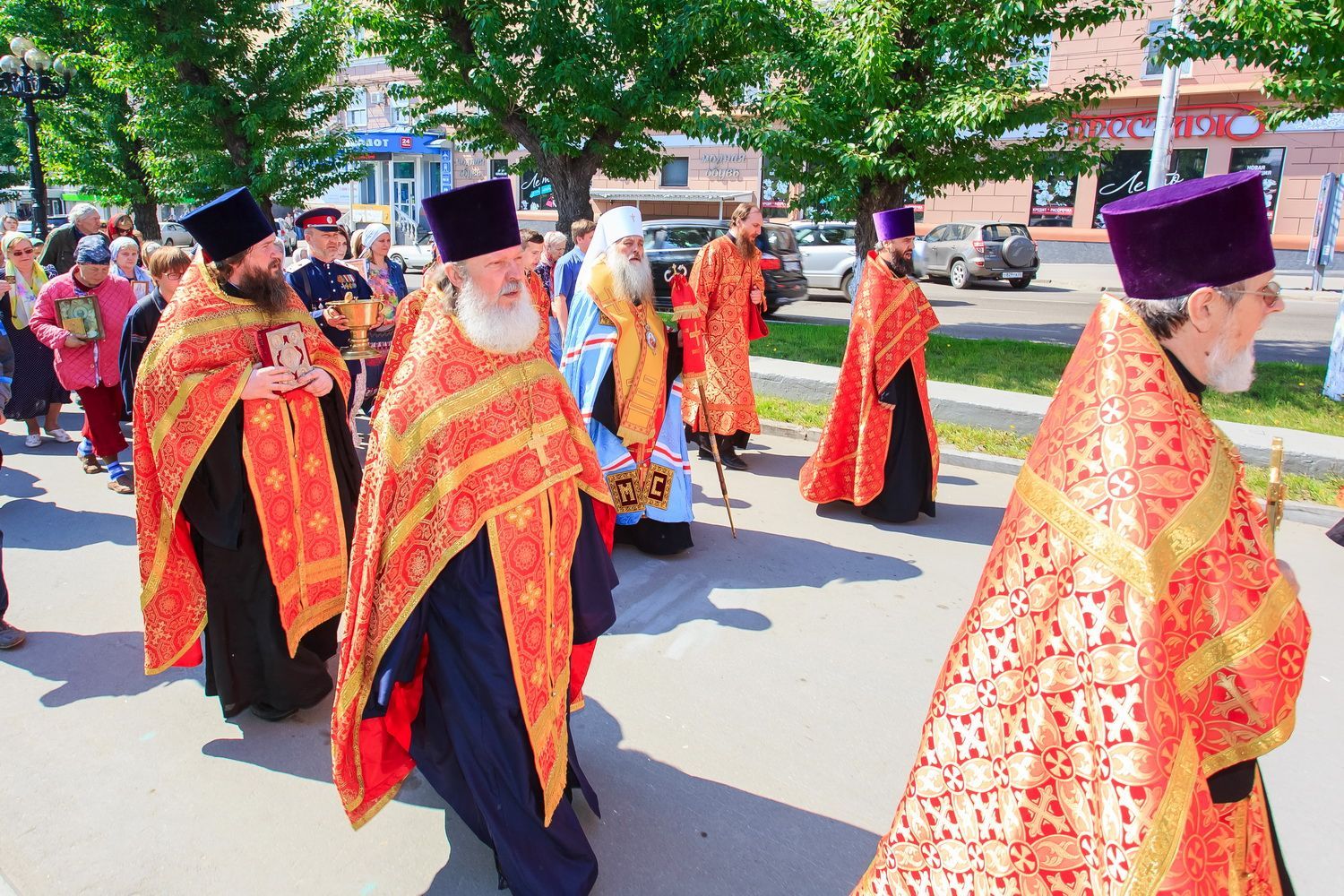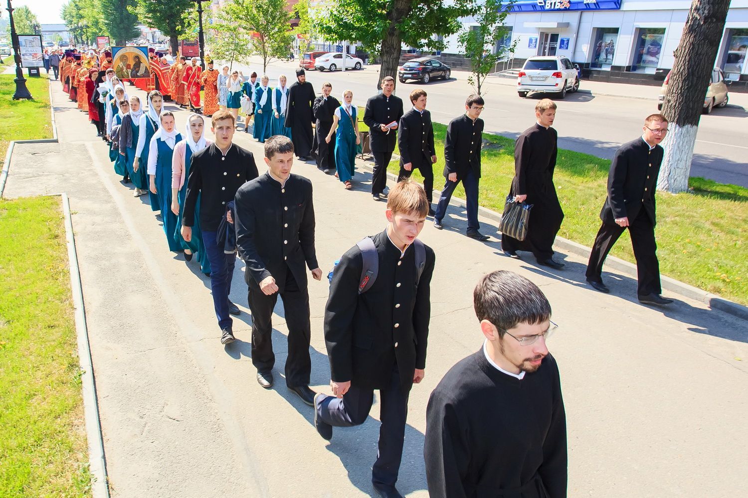 После богослужения, в рамках праздничных мероприятий, посвященных Дню славянской письменности и культуры, от храма до площади Ветеранов по главному проспекту краевой столицы прошел крестный ход. Участие в нем приняли духовенство и миряне Алтайской митрополии.