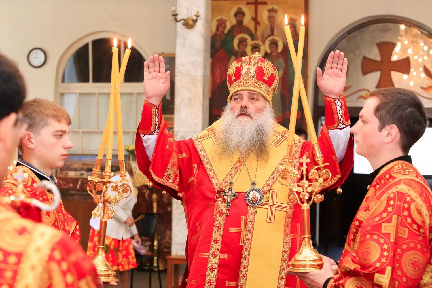 В день памяти святых равноапостольных Мефодия и Кирилла, просветителей славян, 24 мая, Божественную литургию в Никольском храме Барнаула возглавил митрополит Барнаульский и Алтайский Сергий.