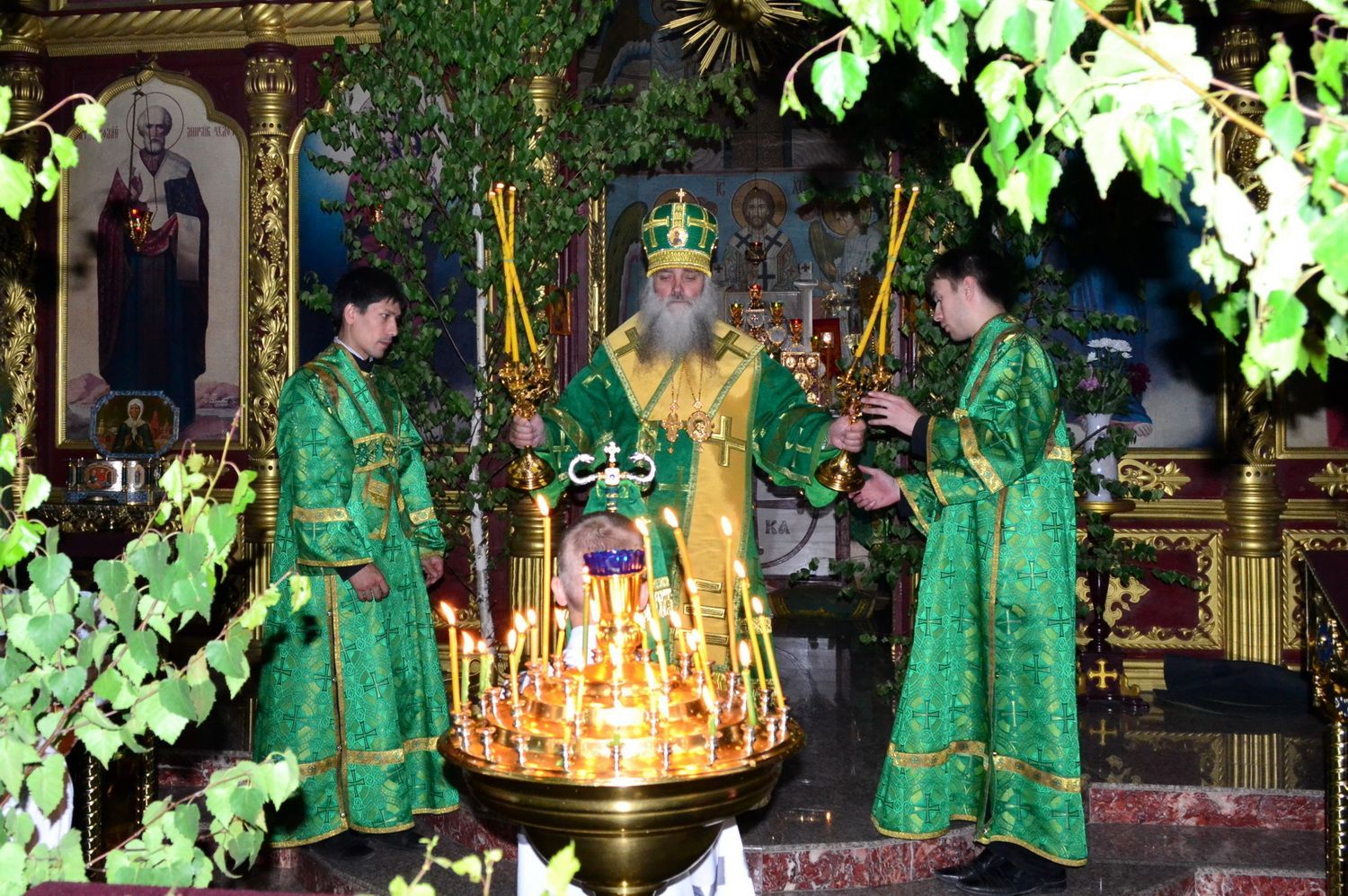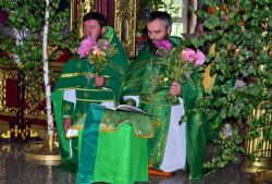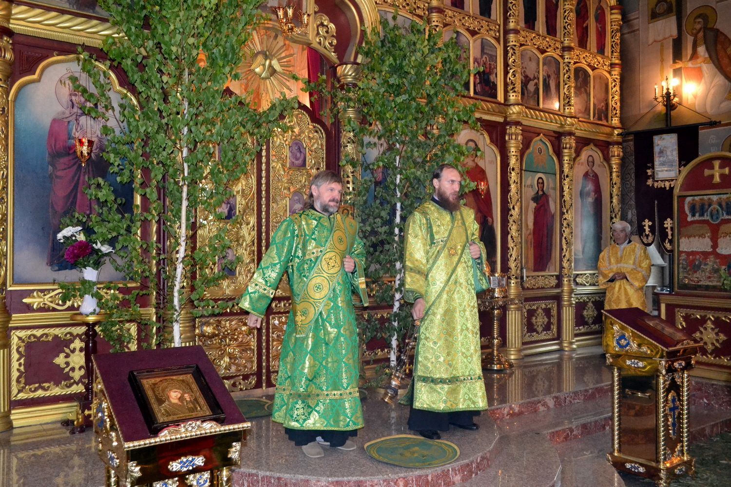 Священнослужители особо поздравили прихожан с этим знаменательным днем, так как он считается еще и Днем рождения Церкви.