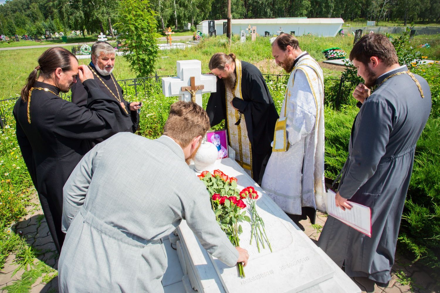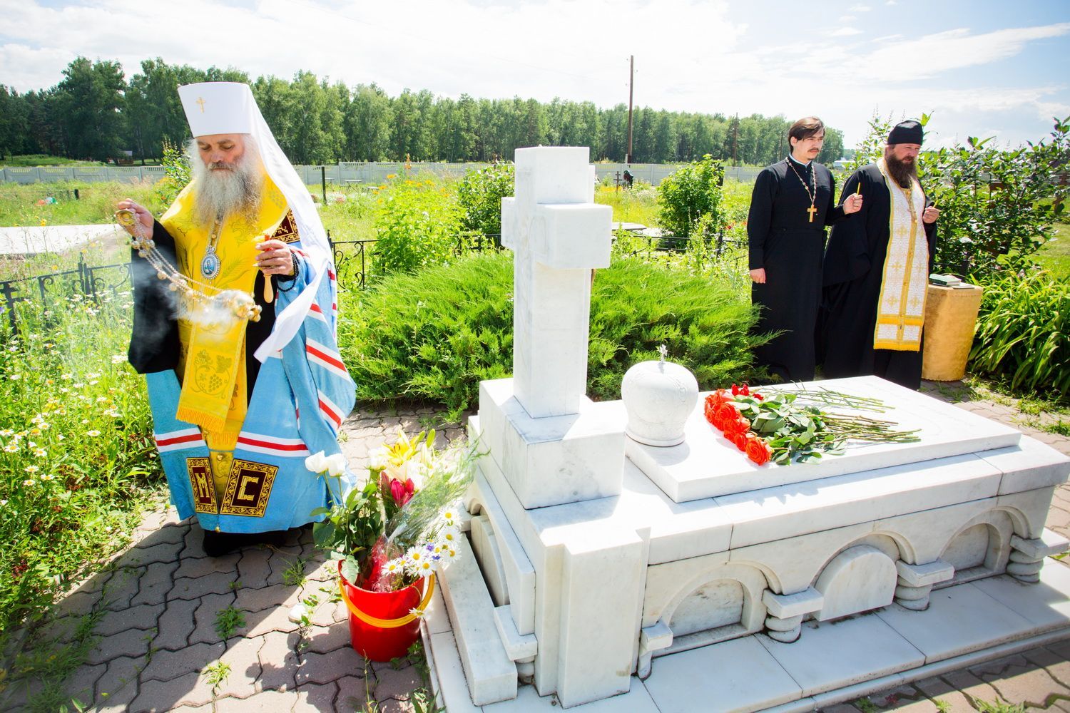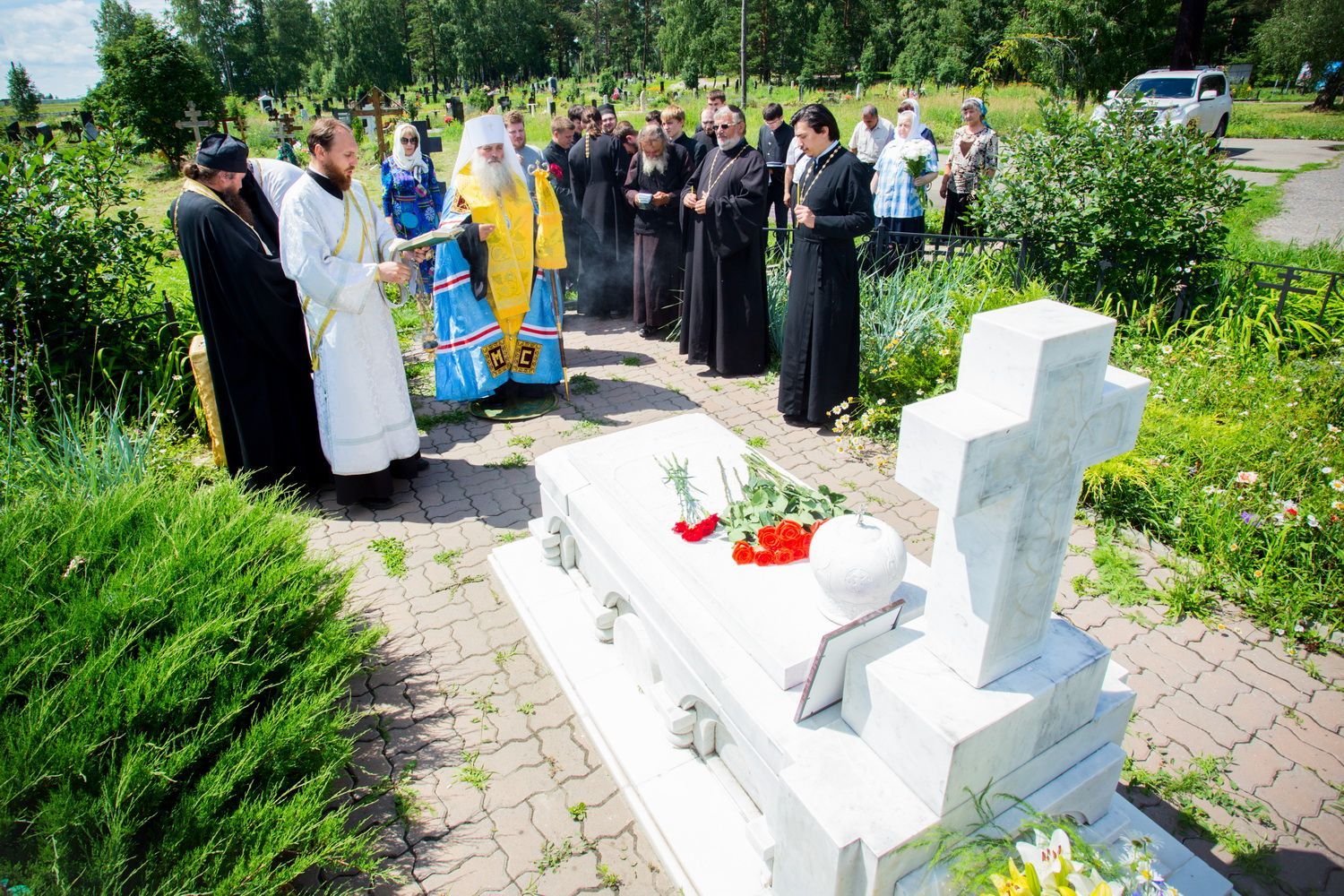 Заупокойное богослужение на могиле почившего архипастыря возглавил митрополит Барнаульский и Алтайский Сергий в сослужении секретаря Барнаульской епархии, настоятеля Александро-Невского Собора протоиерея Андрея Басова и духовенства Барнаульской епархии.
