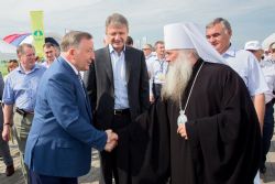 Торжественную церемонию открытия агропромышленного форума "Всероссийский день поля - 2016" посетил 15 июля митрополит Барнаульский и Алтайский Сергий в сопровождении секретаря Барнаульской епархии, настоятеля Александро-Невского Собора г.Барнаула протоиерея Андрея Басова.
