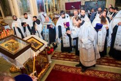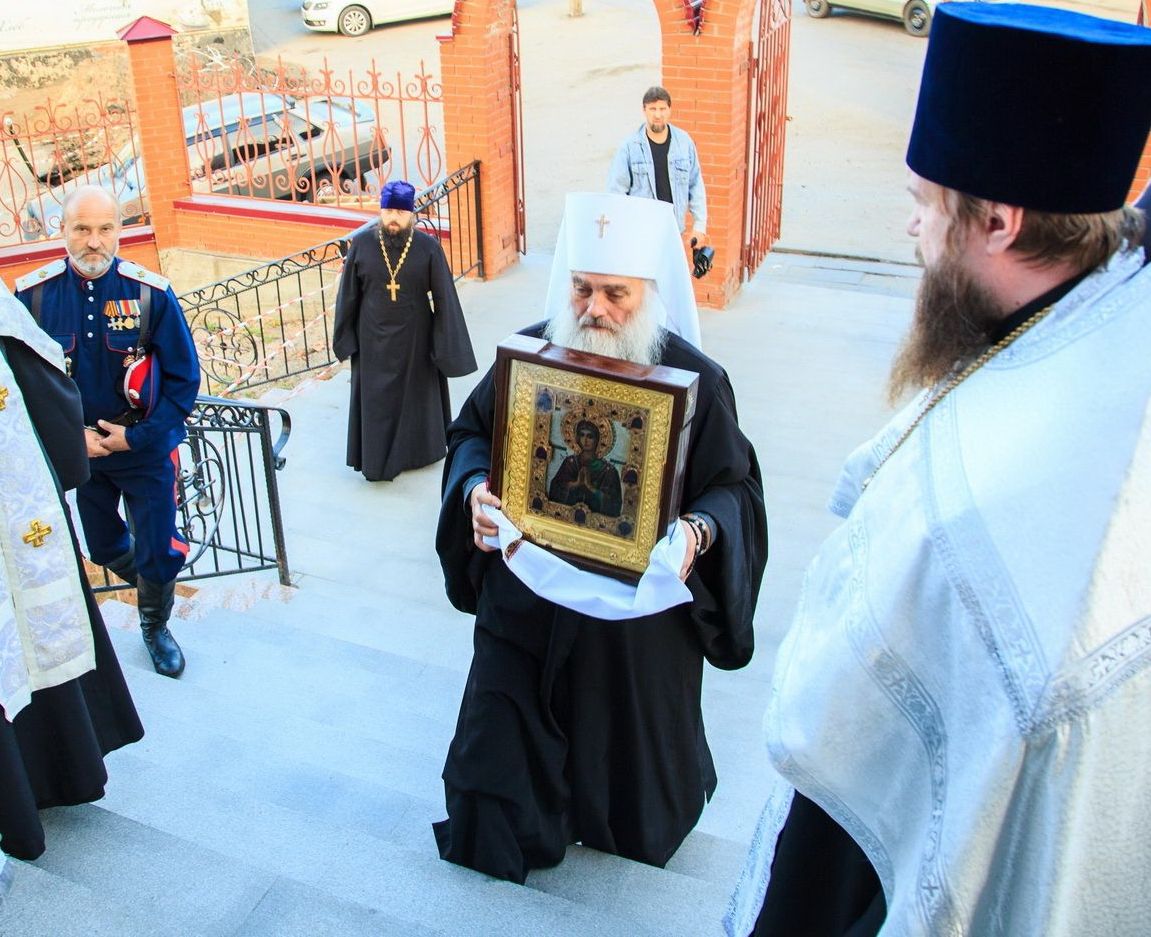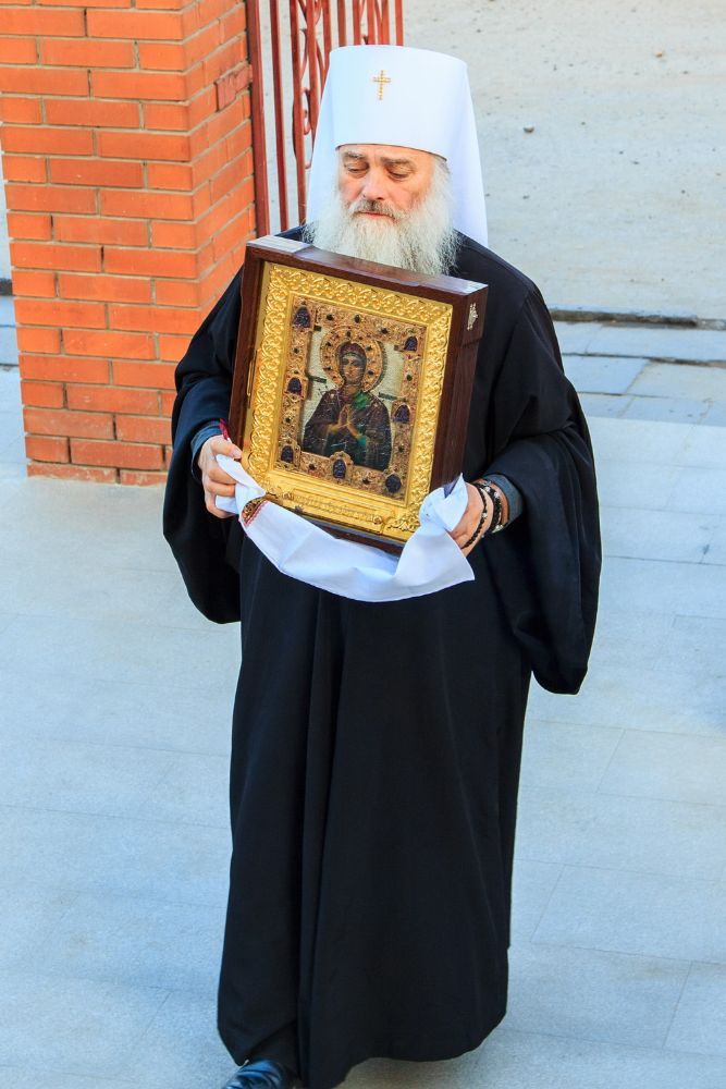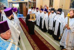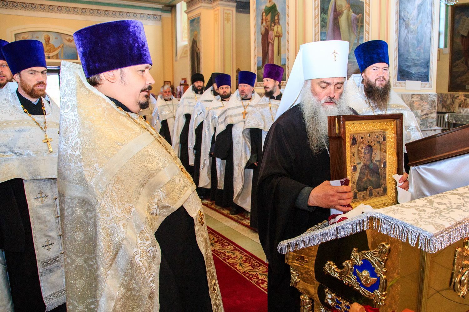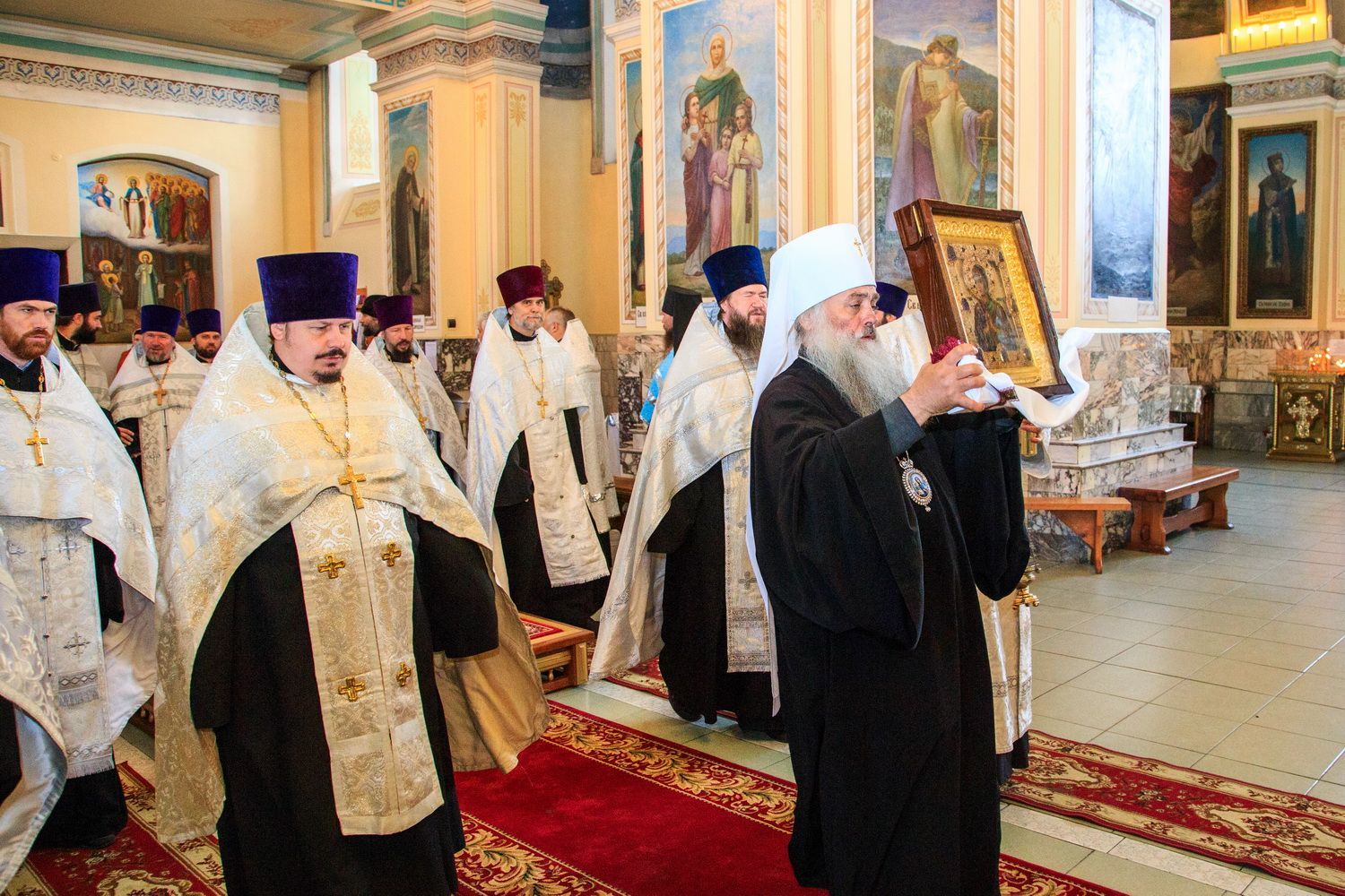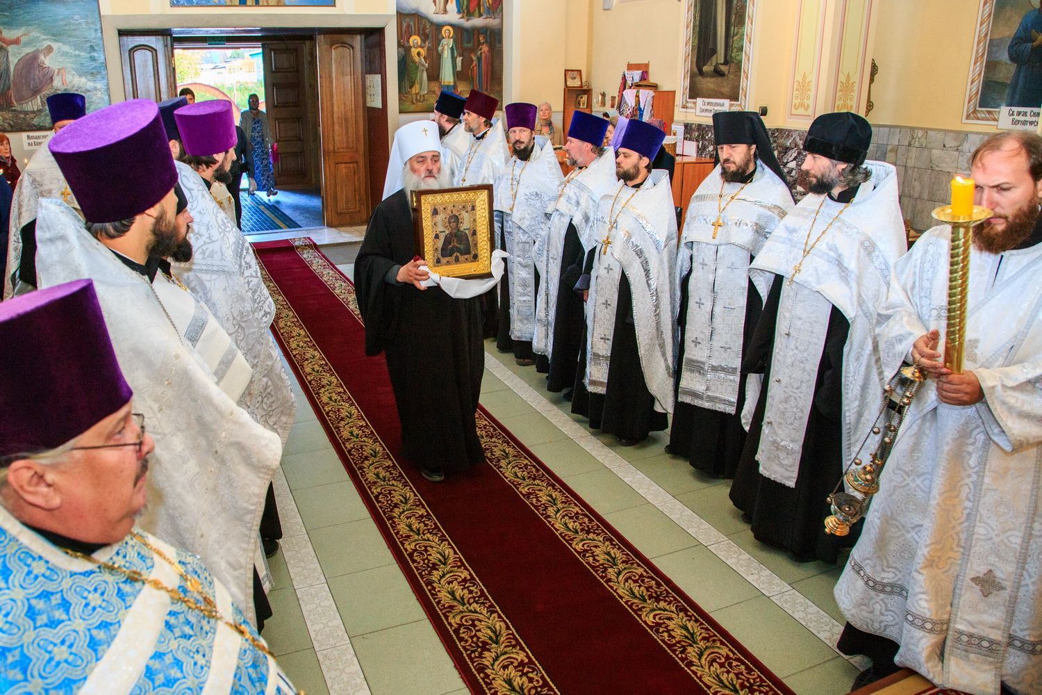 Святыню встретил митрополит Барнаульский и Алтайский Сергий, который торжественно внес икону в Покровский кафедральный собор. Затем прошел молебен с акафистом. Архипастырю сослужил секретарь Барнаульской Епархии, настоятель Александро-Невского Собора протоиерей Андрей Басов и духовенство Барнаульской епархии.