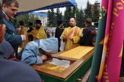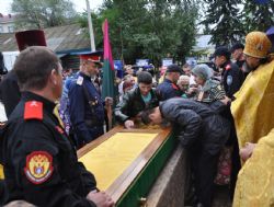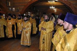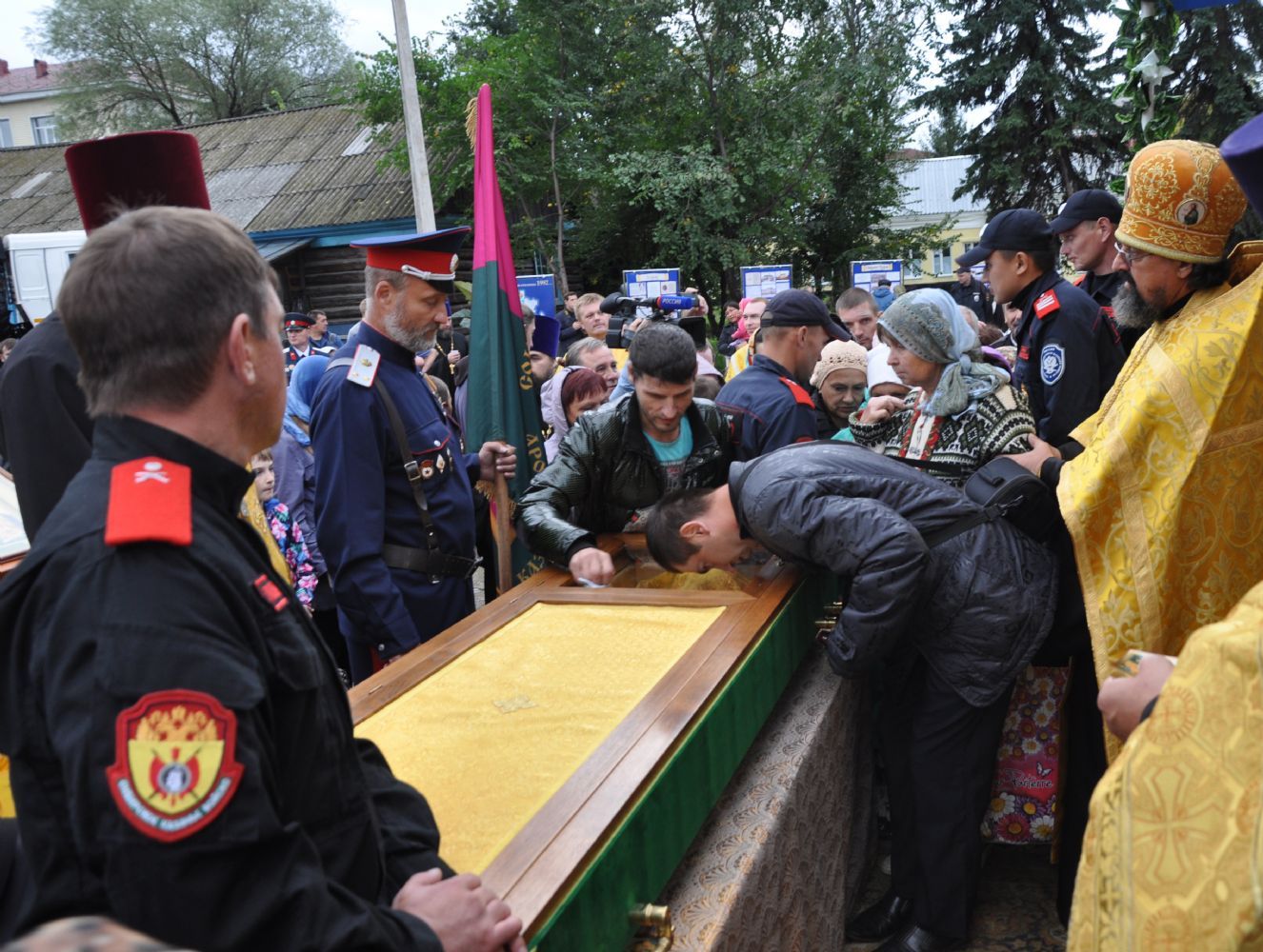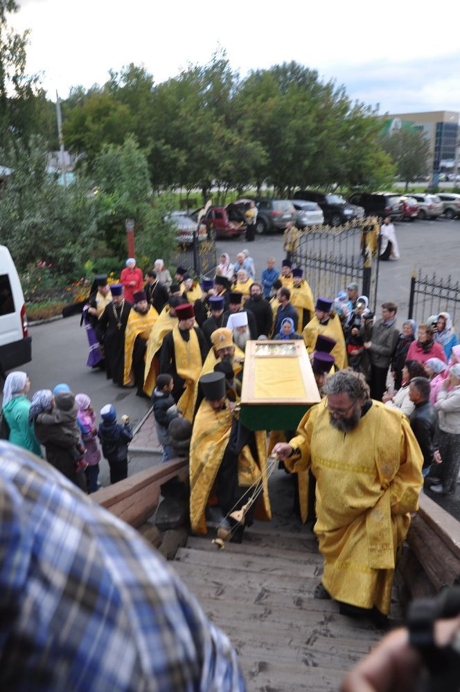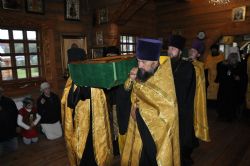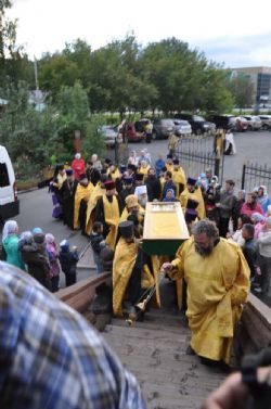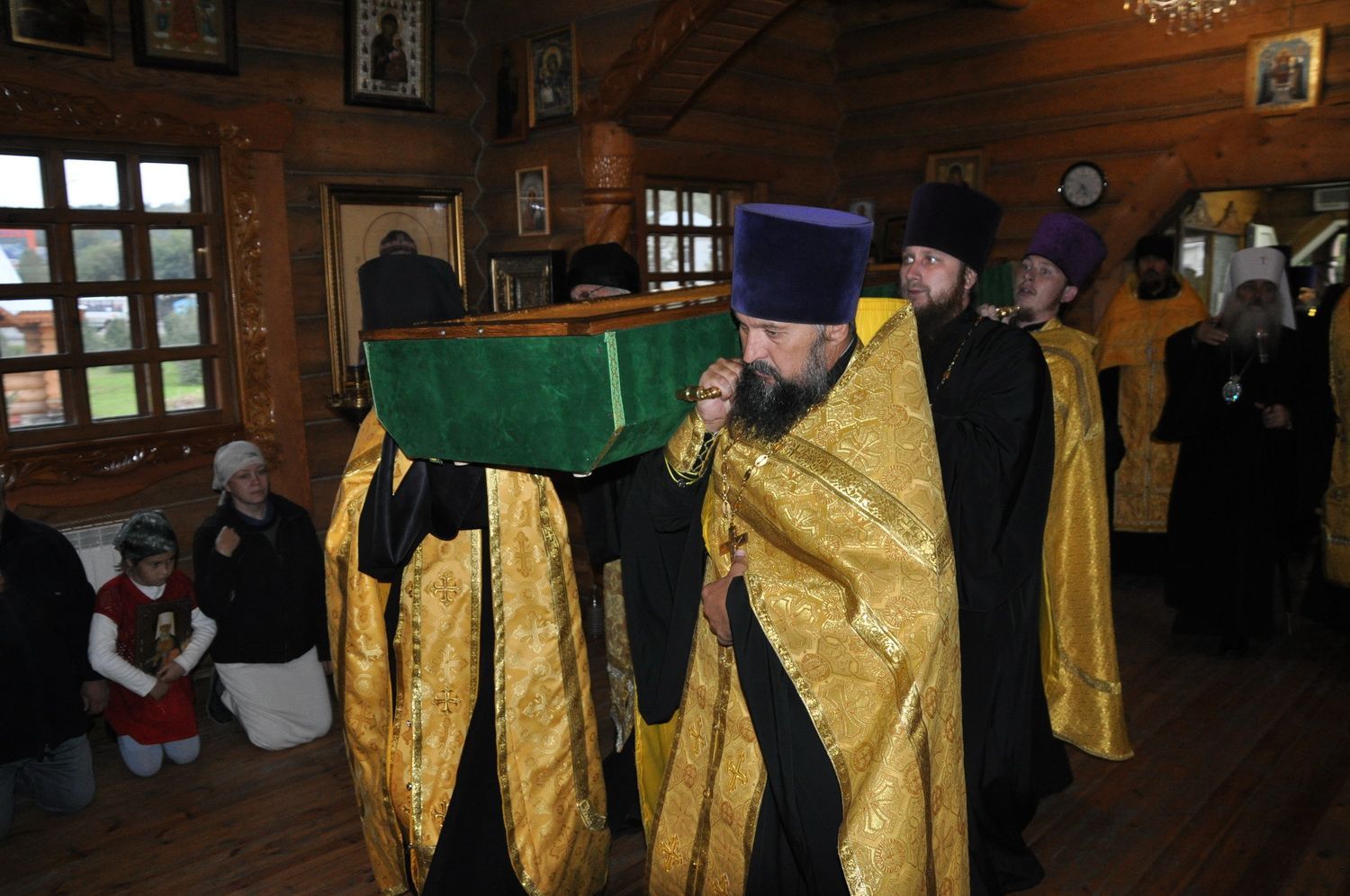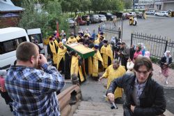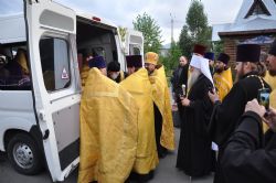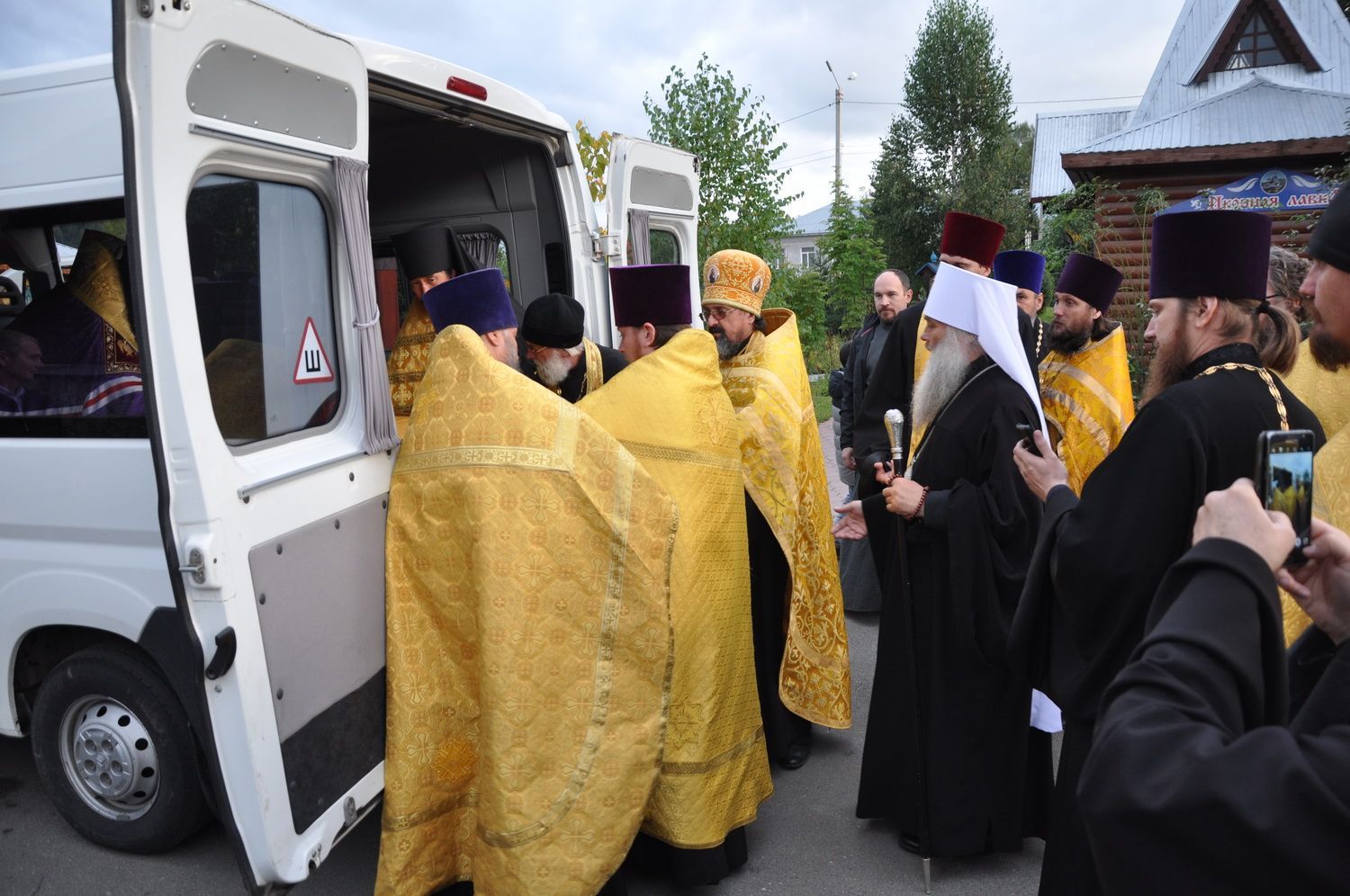 После того, как все присутствующие (а это около тысячи человек) приложились к мощам и получили на память иконку с изображением Святителя, раку торжественно перевезли в Макариевский храм Горно-Алтайска.