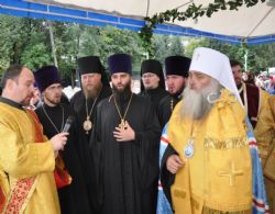 "Безусловно, это число, 31 августа, станет праздничным днем в церковном календаре, как день перенесения мощей. Всем нам он запомнится, как великий и светлый день для всего Алтая. Теперь мы имеем на Алтае покровителя и должны иметь великую благодарность Святейшему Патриарху, что он благословил, исполняя волю Божию и волю Святителя Макария, перенести сюда, на Алтай его честные останки. Поздравляю вас всех с этим историческим событием, желаю благословения Божьего, мира и памяти, которую вы будете передавать своим детям, а они, надеюсь, проживут долше нас и будут передавать ее дальше! Временно рака с мощами будет прибывать в соборе во имя преподобного Макария (Глухарева), который также долгие годы проповедовал на этой земле, а потом, когда воздвигнут новый собор, великую святыню поместят в нем.