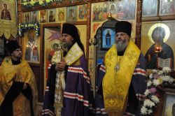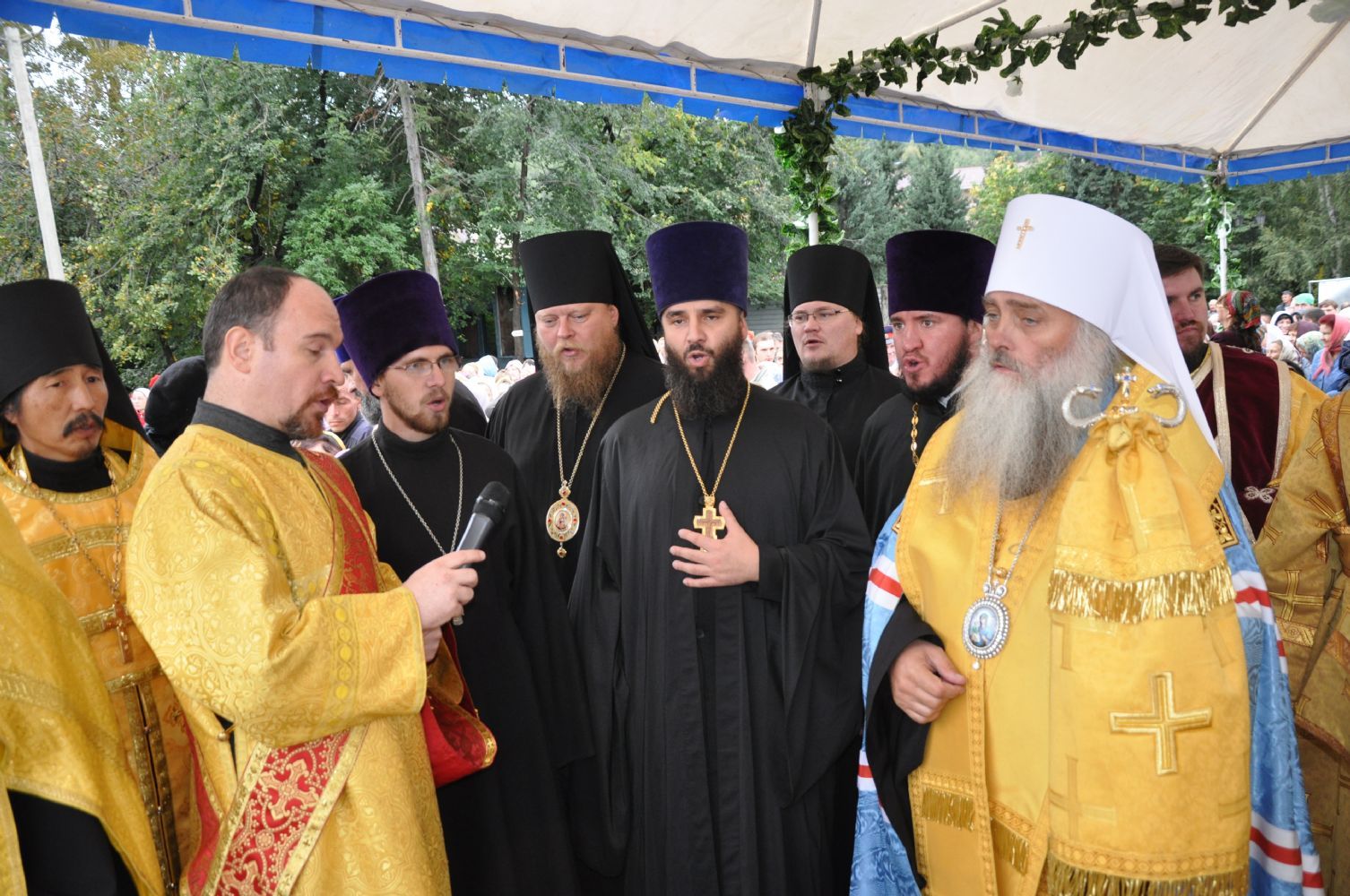 Ему сослужили епископ Горноалтайский и Чемальский Каллистрат, епископ Рубцовский и Алейский Роман, митрофорный протоиерей Ростислав Кирашук, секретарь Барнаульской епархии, настоятель Александро-Невского Собора протоиерей Андрей Басов, благочинный Белоярского округа протоиерей Вячеслав Данькин, благочинный Заринского округа протоиерей Андрей Ушаков, благочинный Барнаульского округа иерей Олег Голубитских, штатные клирики Горноалтайской епархии и Алтайской митрополии.