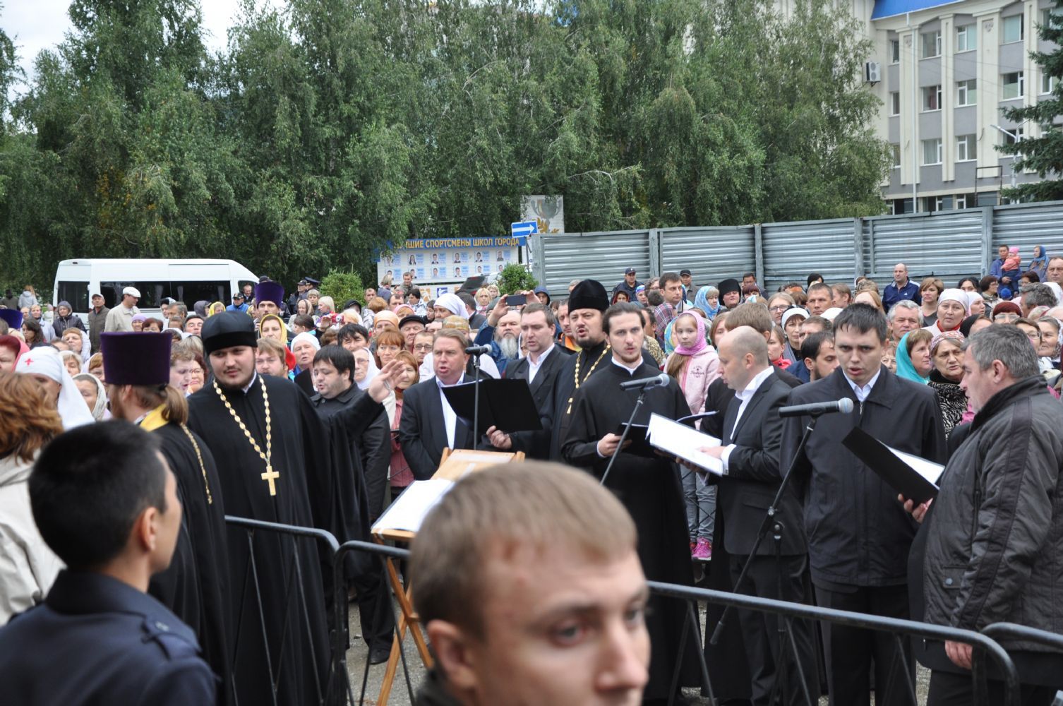 Мы стоим сейчас на этом месте, где пока ничего нет, но в будущем здесь, я верю, воздвигнется великолепный храм соборный. Это достойное место и храм Божий стоял здесь раньше и был украшением всей Улалы. Со временем, уже в новый храм, будут приходить наши дети, внуки и все потомки до скончания века, до того дня, когда Господь сам приидет и мы все соединимся молитвенно и со Святителем встретимся воочую, лицом к лицу. И будет великое счастье и радость. Еще раз с праздником всех!".