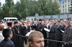 На месте будущего кафедрального собора во имя Всемилостивого Спаса, закладной камень во основании которого освятил Патриарх Московский и всея Руси Кирилл, владыка Сергий обратился к собравшимся: