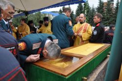 Напомним, 31 августа Горноалтайскую епархию с краткосрочным визитом посетил Патриарх Московский и всея Руси Кирилл. Он прилетел специально, чтобы передать в дар небольшой сибирской епархии раку с мощами великого святого и освятить закладной камень во основании будущего кафедрального собора.