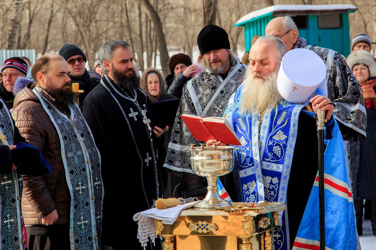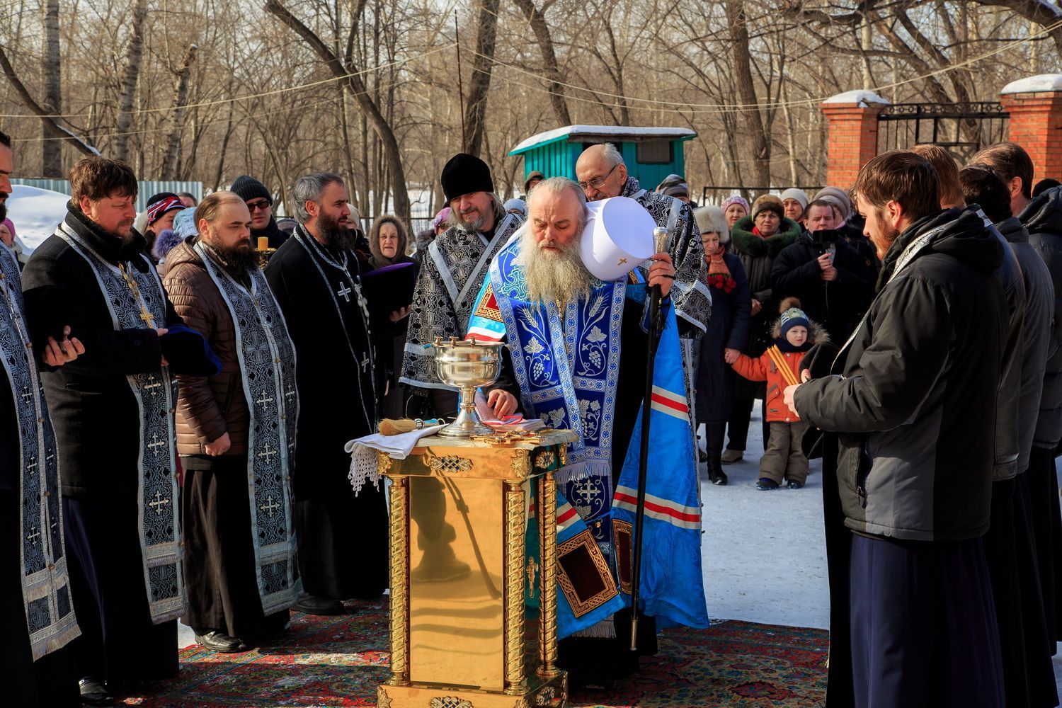 Глава Алтайской митрополии совершил чин освящения накупольного креста для Богоявленского храма Барнаула