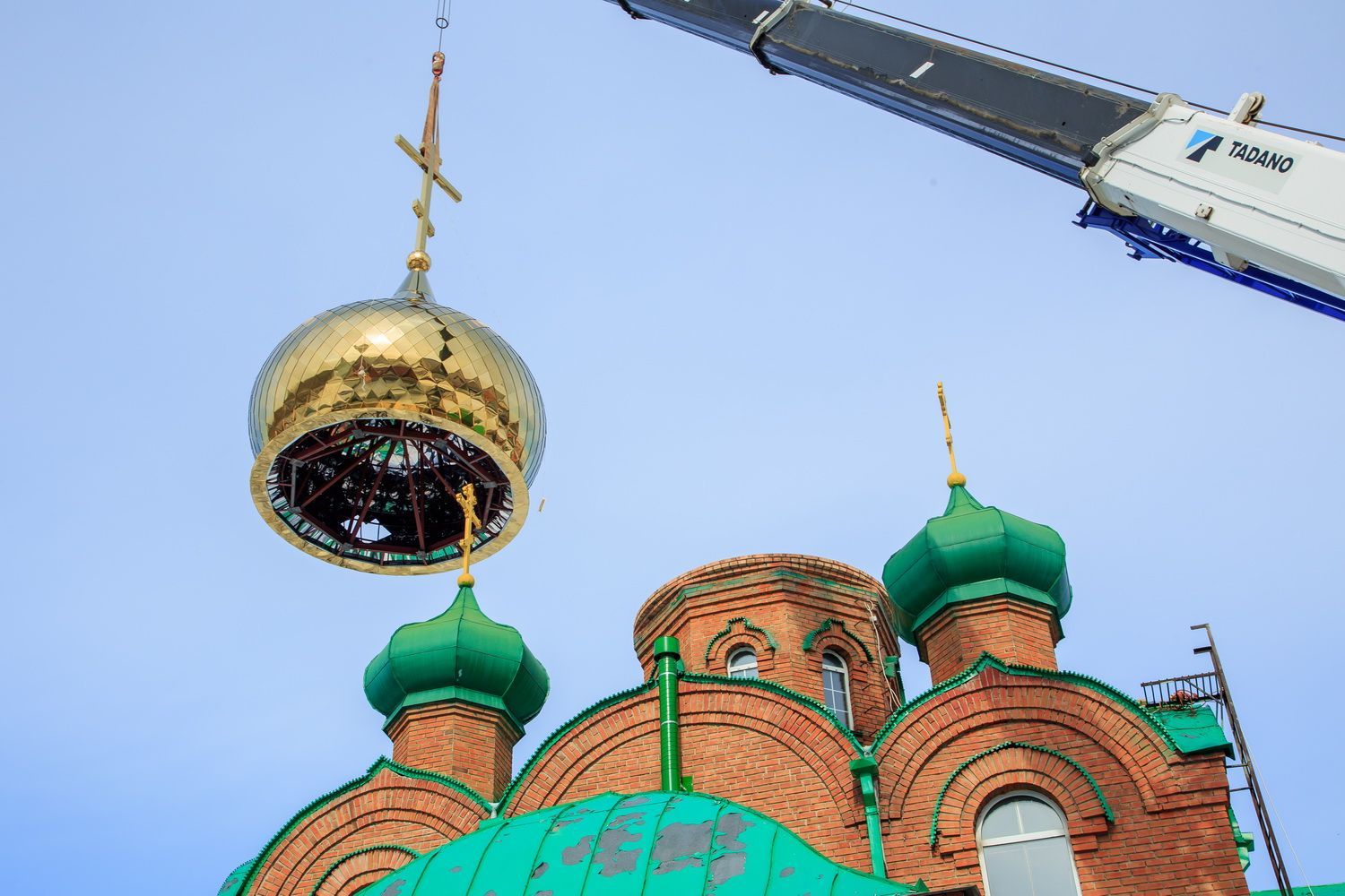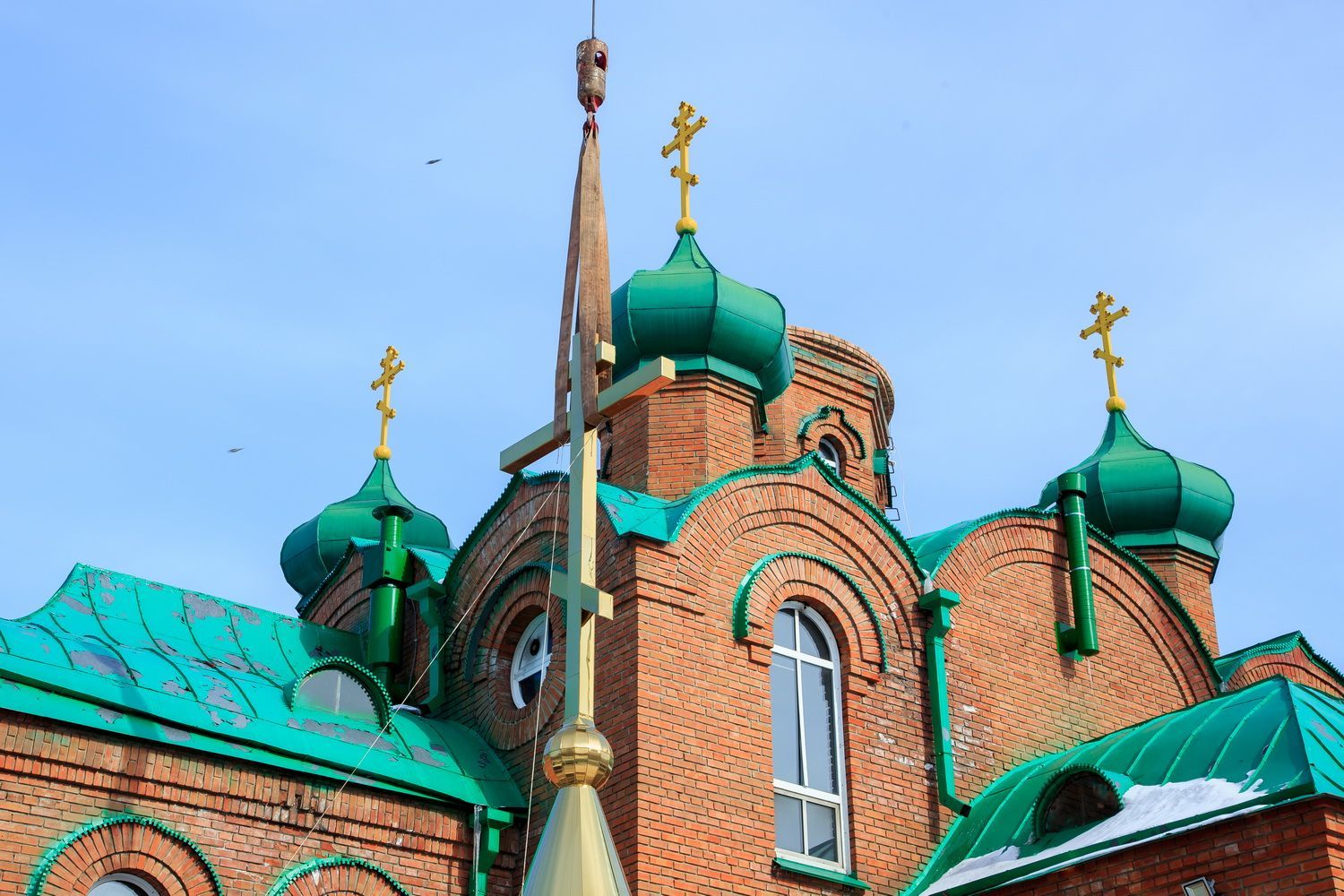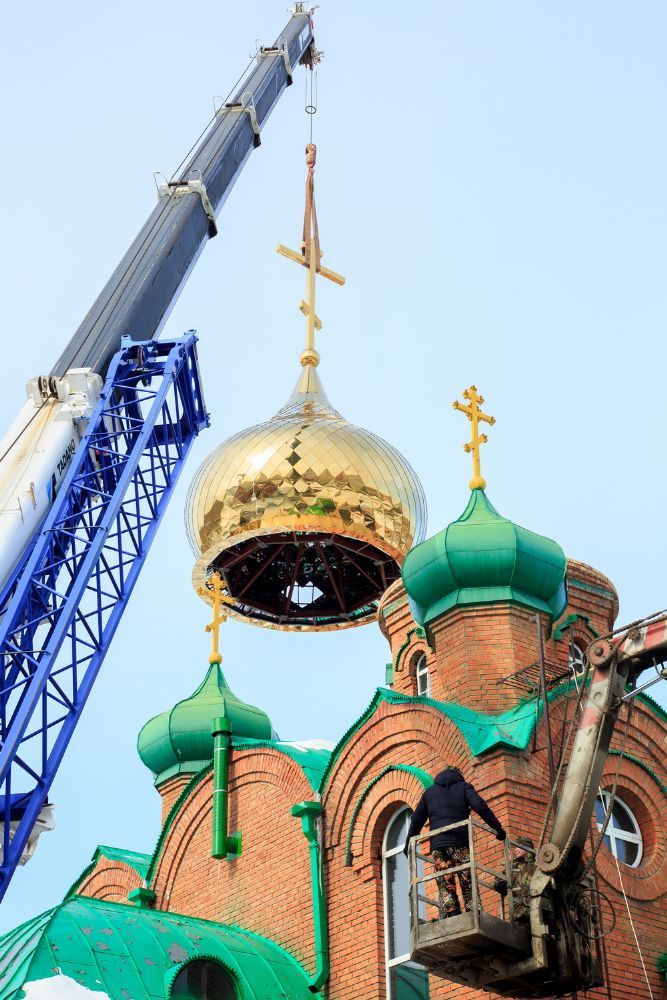 Новый купол, высота которого вместе с крестом составила девять метров, подняли 5 марта на Богоявленскую церковь храмового комплекса Александро-Невского собора Барнаула.