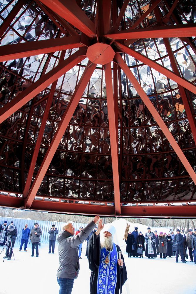 Купол изготовлен на барнаульском предприятии «Восточная вершина» под руководством О.Ю. Апаликова. Его вес более двух тонн, диаметр 5,3 метров. Покрытие – нитрид титана. Ориентировочный срок службы – 50 лет.