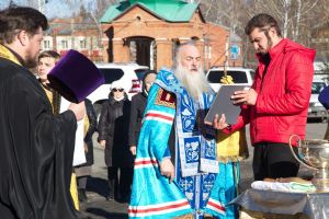 Владыке сослужили настоятель собора, благочинный Барнаульского округа протоиерей Андрей Басов, благочинный Тальменского округа иерей Алексий Овчинников и другие клирики епархии. По завершении чина освящения купол с крестом был поднят и установлен на алтарной части храма.