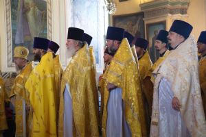 Клирик Александро-Невского Собора иеромонах Исайя (Жмакин) сослужил Митрополиту Сергию в престольный праздник Знаменского монастыря