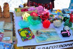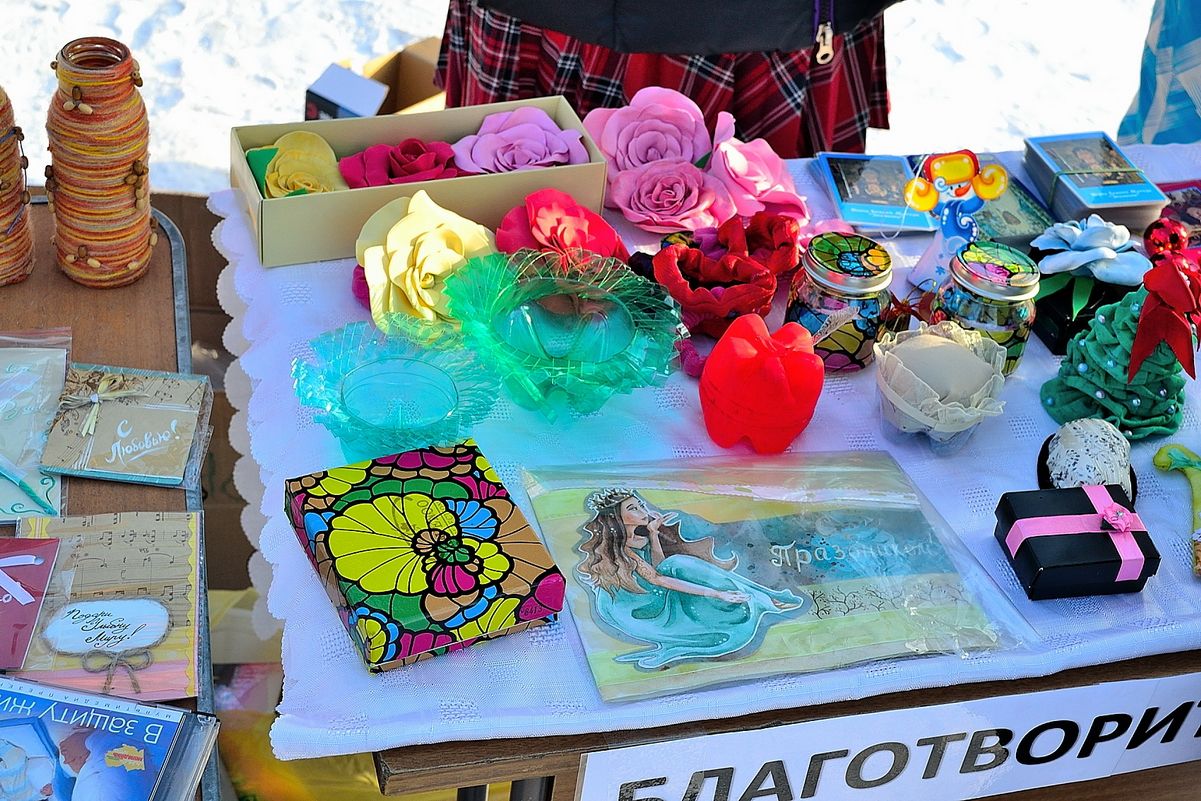 Сувениры для ярмарки изготовлены силами молодежного объединения "Невские". Все средства от продажи сувениров планируется использовать для рождественских подарков детям детского отделения психоневрологического отделения больницы пос.Новосиликатный, детского дома №8, детского туберкулезного санатория.