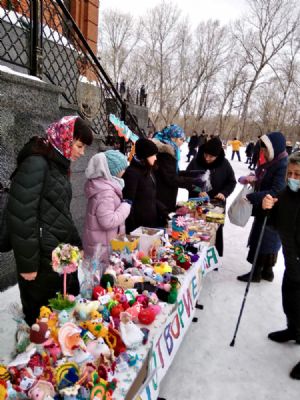 При поддержке Барнаульской городской организации АКО "Всероссийское общество инвалидов", фольклорного коллектива Дома народов Алтайского края, православной молодежи Собора, учащиеся Воскресной Школы и все присутствующие смогли увидеть фрагменты исконных обычаев русского народа.