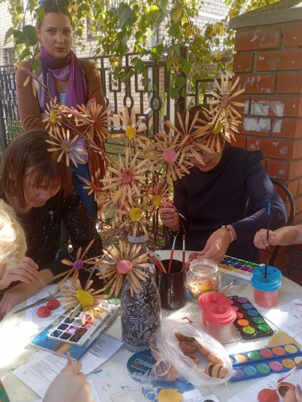 На свежем осеннем воздухе ребят ждали весёлые подвижные игры и творческий мастер-класс . Дети мастерили из природных материалов красоту Божьего Мира – солнышко и божью коровку. Эти простые, но душевные поделки стали украшением деревьев на территории фонда.