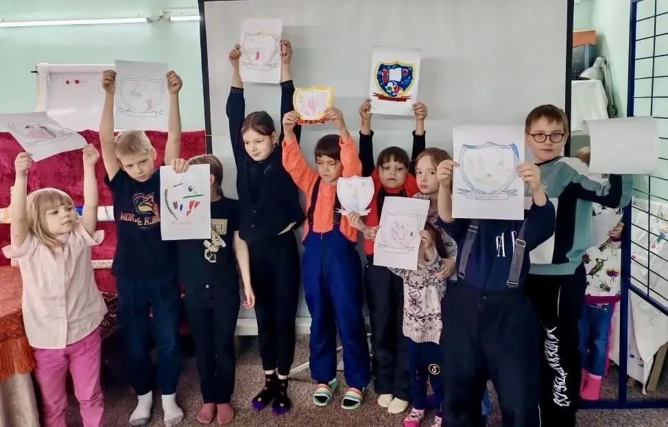 Далее ребята «Доброго Сердца» под руководством Ирины Авдеевой, автора и ведущей урока, погрузились в историю родной земли: узнали, что символизируют герб Алтайского края и города Барнаула. Прозвучали стихи о гербе, после чего каждый ребенок нарисовал собственный семейный герб — малый образ того, чем дорога семья: верой, трудом, заботой друг о друге.