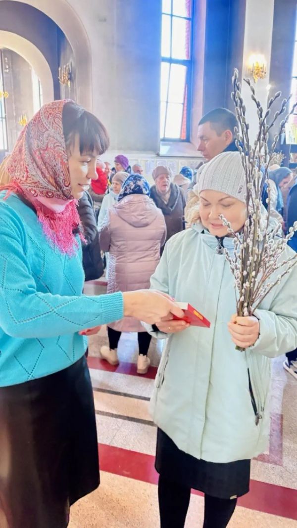 5 апреля 2026 года, по благословению руководителя секретариата Алтайского отделения МОО «ВРНС», благочинного Барнаульского городского округа, настоятеля Александро-Невского собора протоиерея Андрея Басова, братья и сестры молодёжного центра «Невские» поздравили прихожан с Праздником Входа Господня в Иерусалим.