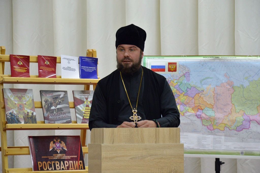 Тема встречи оказалась весьма актуальной, поскольку каждый человек вне зависимости от его религиозной принадлежности вовлечён в процесс реагирования на происходящее в мире. Отец Павел приветствовал офицерский и младший составы росгвардейцев, отметив заслугу и, поблагодарив, за организацию подобных встреч лично полковника Владимира Юрьевича Тарасова. "Замечательно, что у нас есть возможность обсудить всесторонне различные темы, стоящие на повестке дня. Попытаться осмыслить их с точки зрения многовековой религиозной традиции нашей Отчизны" - подчеркнул отец Павел. В своём выступлении он коснулся основных этапов развития России, подробно остановившись на роли Православной веры в становлении государственности и независимости нашей страны. Отрицание, отторжение от исконных корней и вековых традиций неминуемо влечёт за собой разрушительные процессы, стремительный откат назад и хаос.