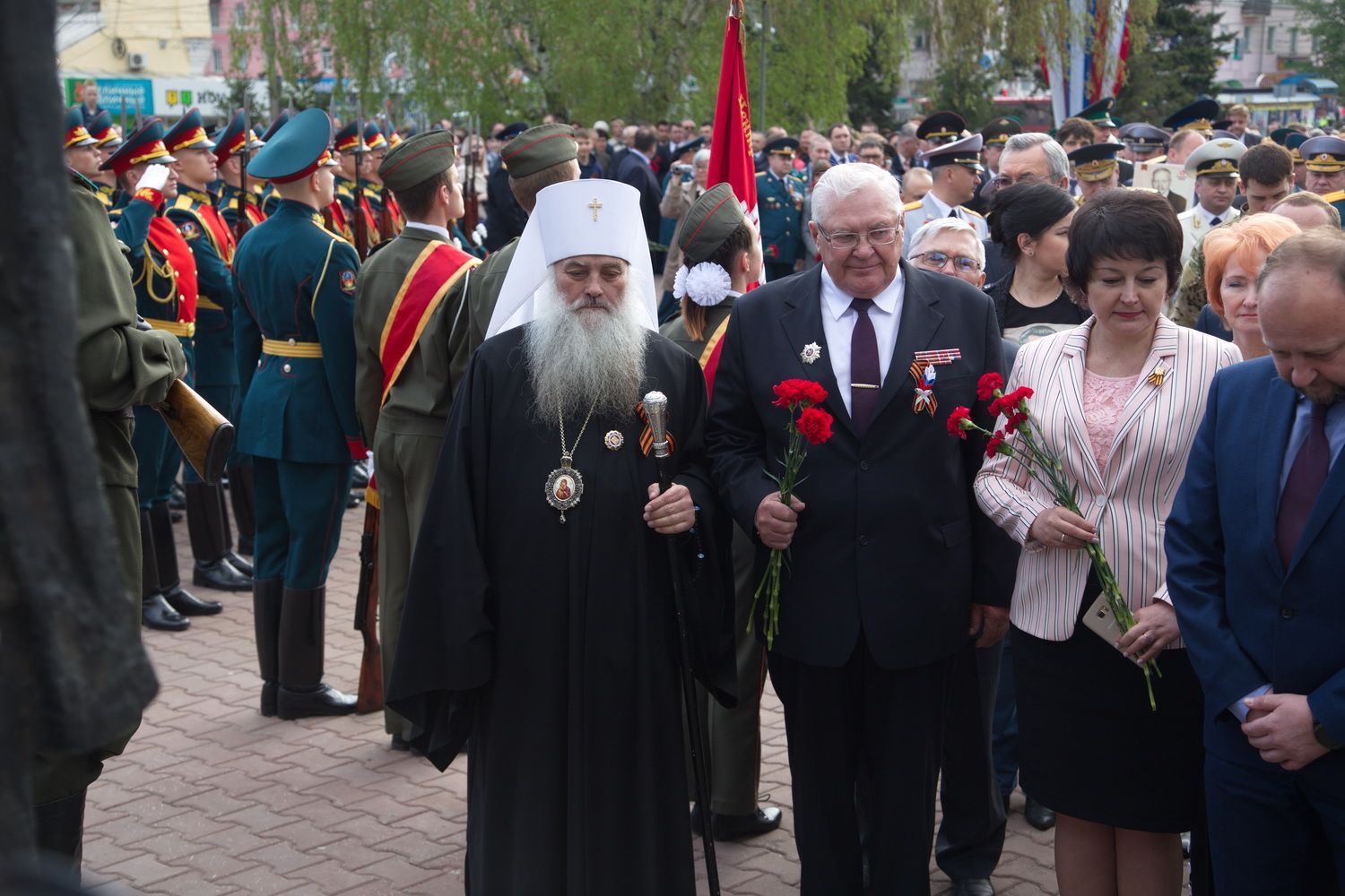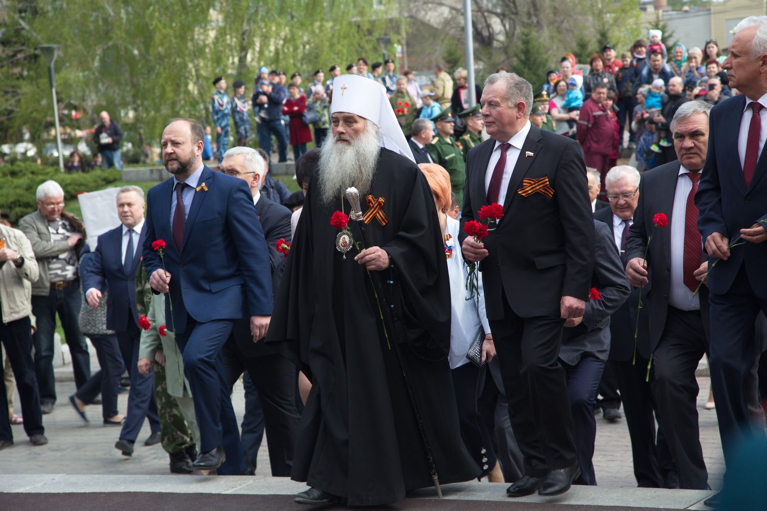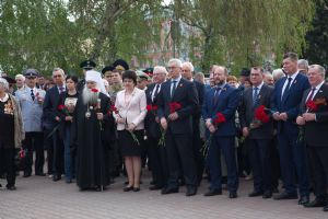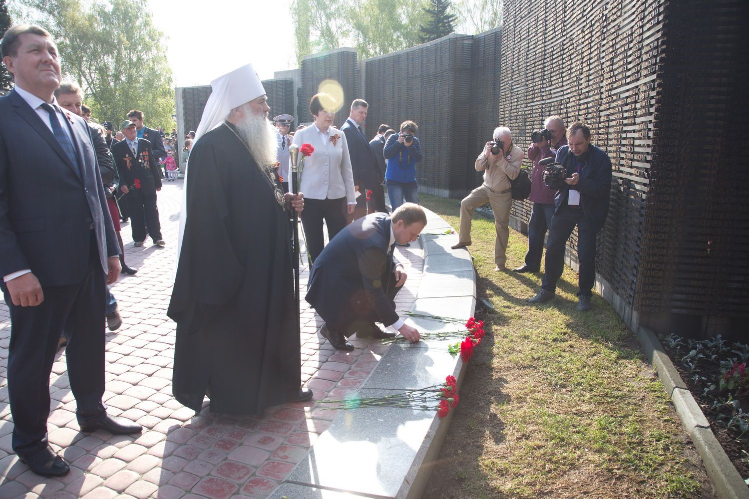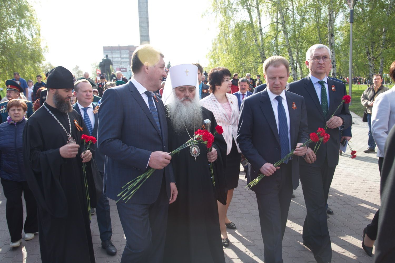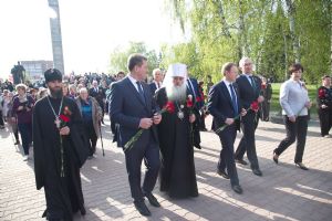 Вместе с владыкой поклониться и отдать дань памяти подвигу народа пришли губернатор Алтайского края Виктор Томенко, глава Барнаула Сергей Дугин, ветераны Великой Отечественной войны и труженики тыла, председатель Алтайского краевого Законодательного Собрания Александр Романенко, заместители Председателя Правительства края Виталий Снесарь, Денис Губин, Ирина Долгова, Иван Кибардин, Игорь Степаненко, Уполномоченный по правам человека в Алтайском крае Борис Ларин.