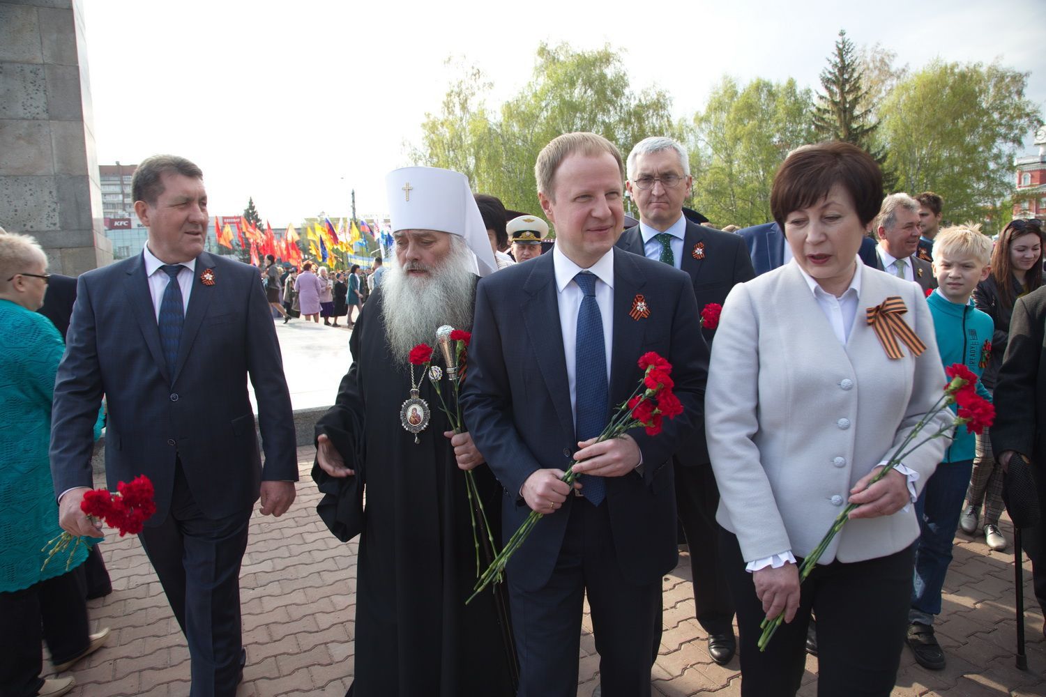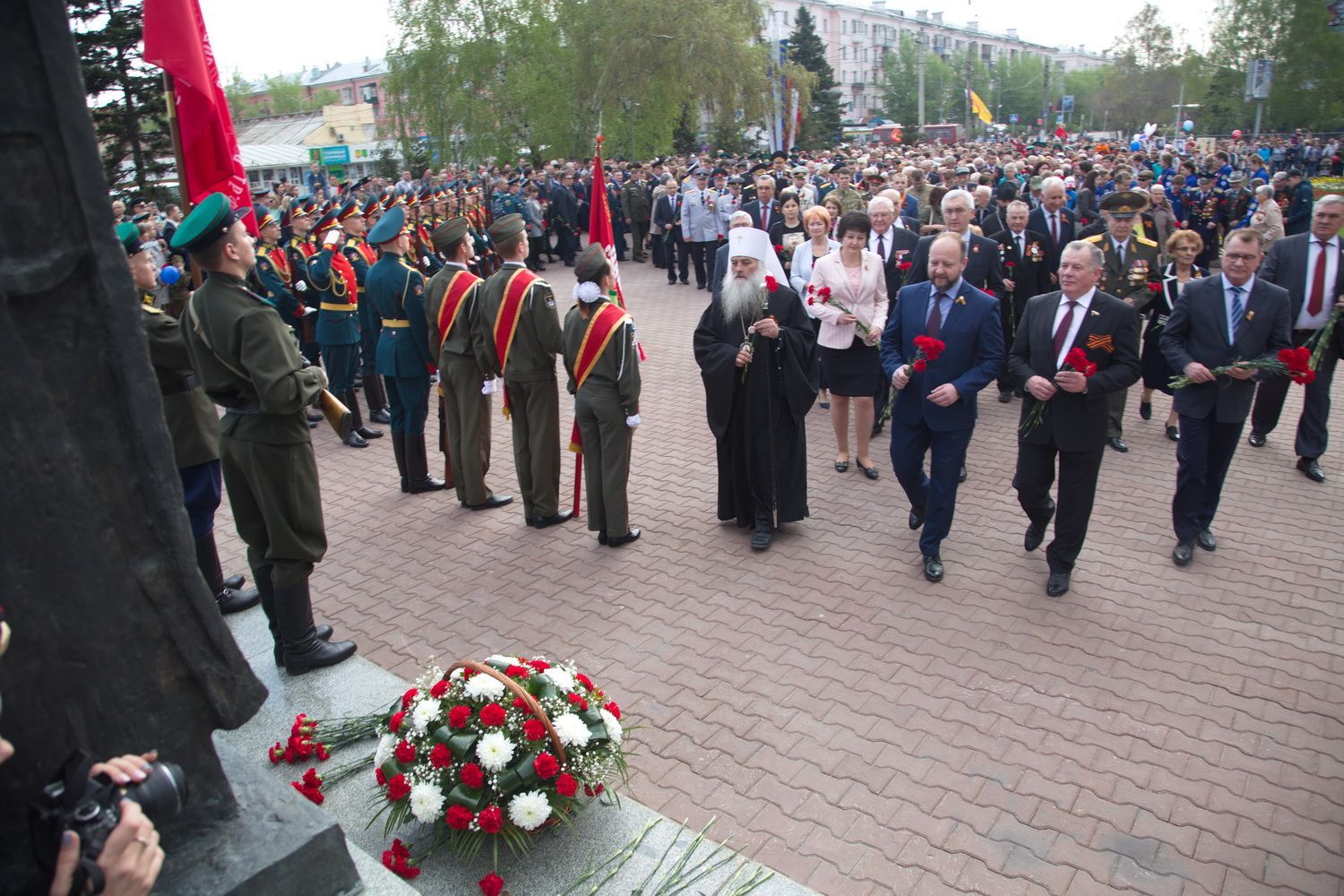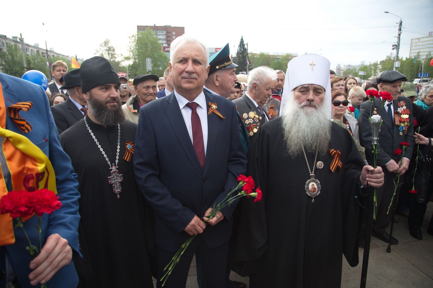 Вместе с владыкой поклониться и отдать дань памяти подвигу народа пришли губернатор Алтайского края Виктор Томенко, глава Барнаула Сергей Дугин, ветераны Великой Отечественной войны и труженики тыла, председатель Алтайского краевого Законодательного Собрания Александр Романенко, заместители Председателя Правительства края Виталий Снесарь, Денис Губин, Ирина Долгова, Иван Кибардин, Игорь Степаненко, Уполномоченный по правам человека в Алтайском крае Борис Ларин.