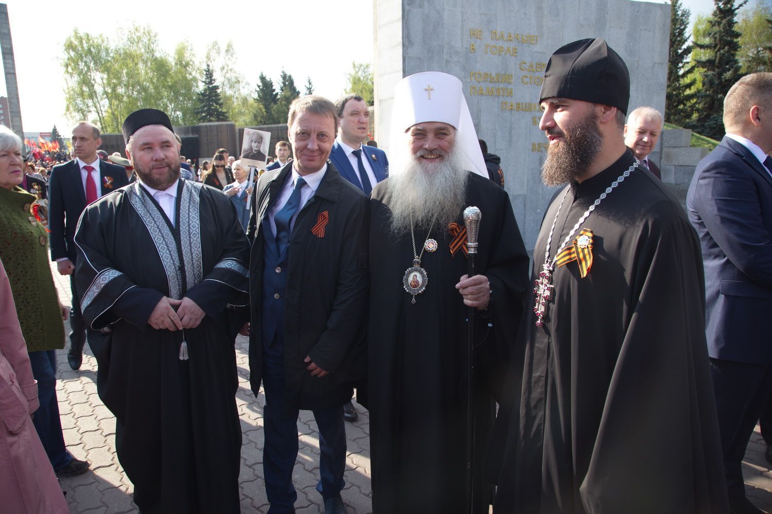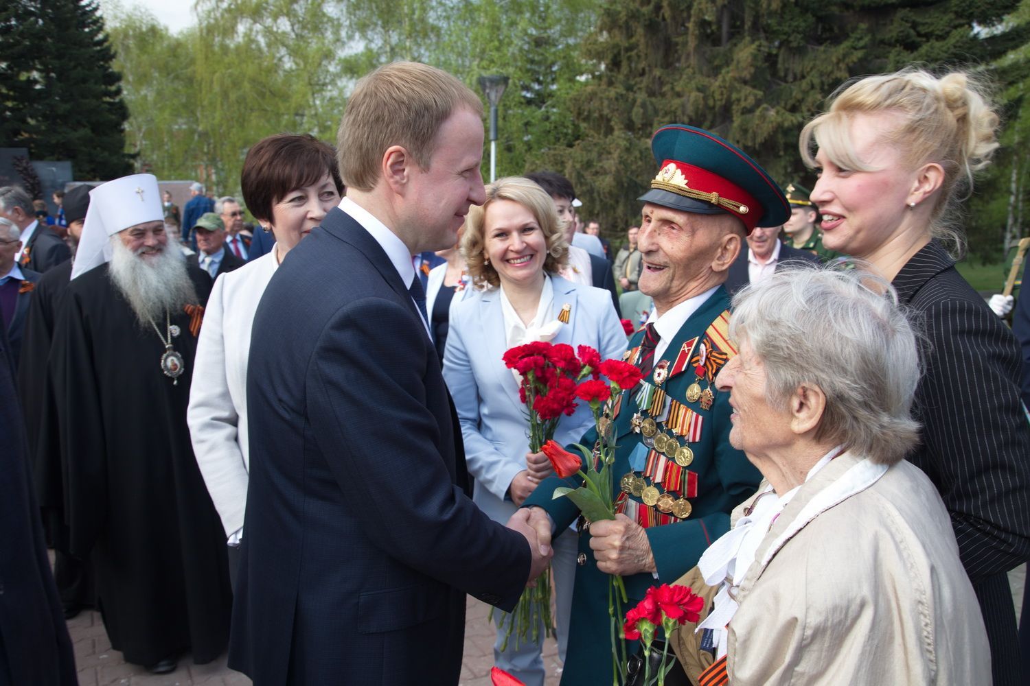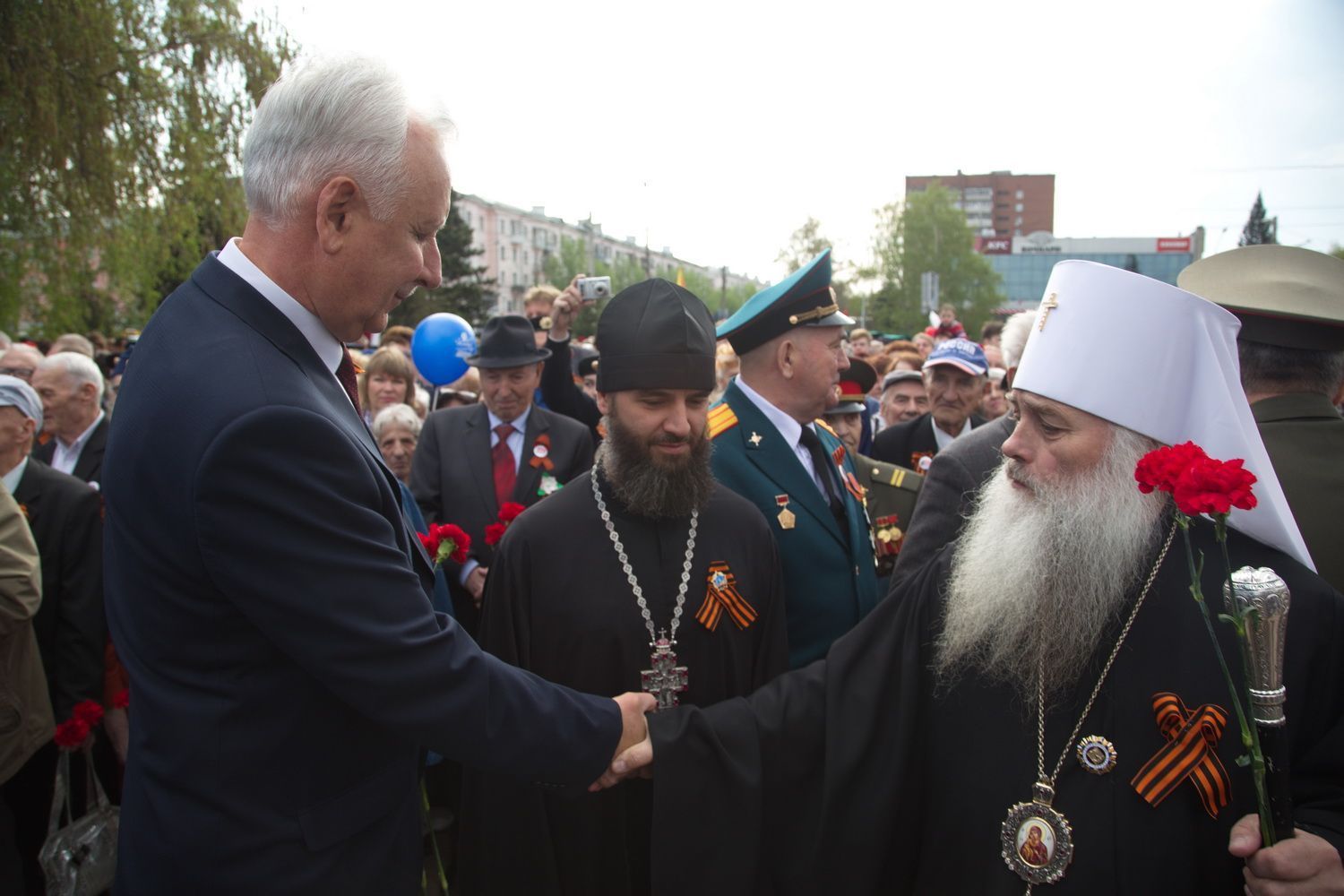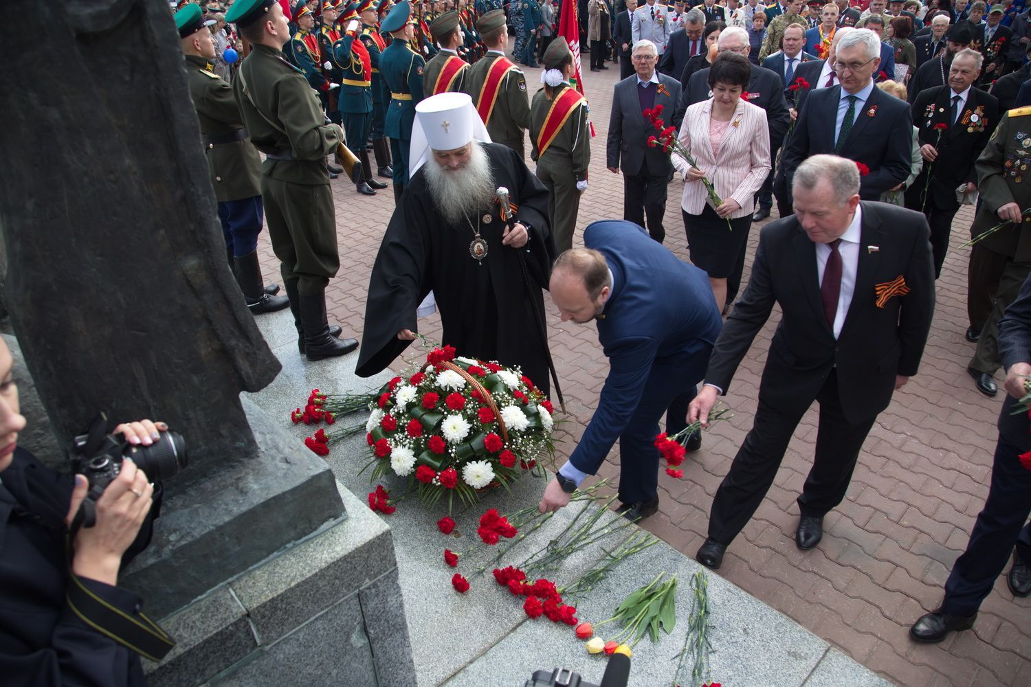 Вместе с владыкой поклониться и отдать дань памяти подвигу народа пришли губернатор Алтайского края Виктор Томенко, глава Барнаула Сергей Дугин, ветераны Великой Отечественной войны и труженики тыла, председатель Алтайского краевого Законодательного Собрания Александр Романенко, заместители Председателя Правительства края Виталий Снесарь, Денис Губин, Ирина Долгова, Иван Кибардин, Игорь Степаненко, Уполномоченный по правам человека в Алтайском крае Борис Ларин.