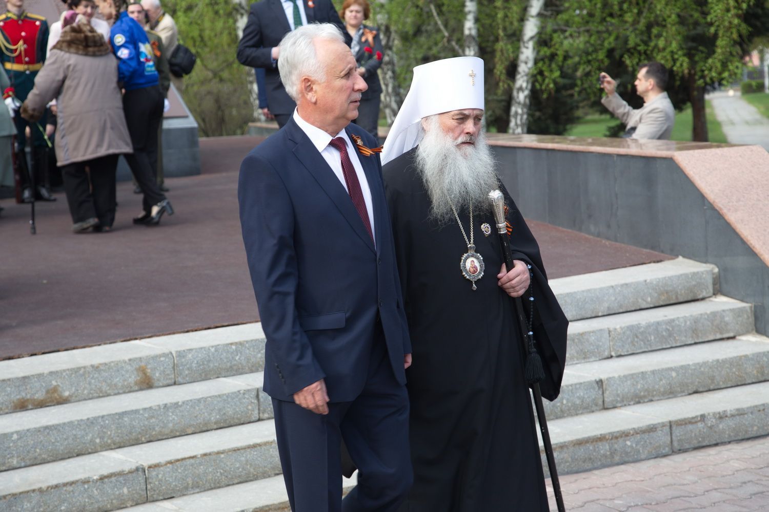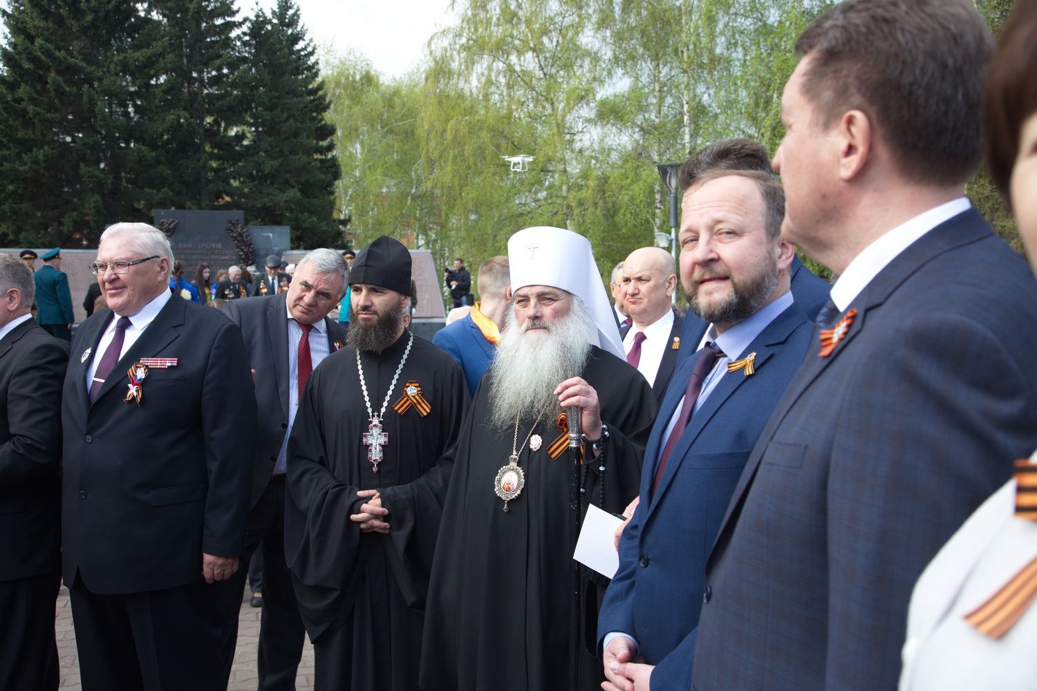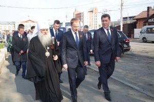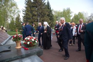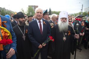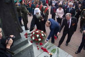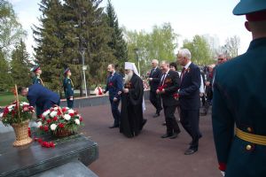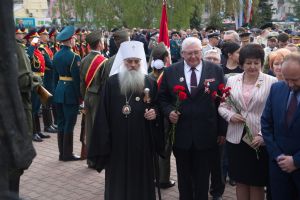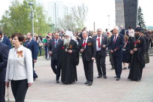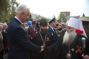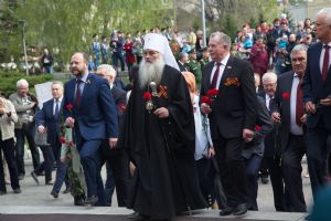 В День Победы 9 мая в Барнауле митрополит Барнаульский и Алтайский Сергий, в сопровождении Благочинного Барнаульского городского округа протоиерея Андрея Басова, принял участие в традиционной церемонии возложения цветов на Мемориале Славы - к скульптурной группе «Прощание», монументу с фамилиями Героев Советского Союза и полных кавалеров ордена Славы, Вечному огню.