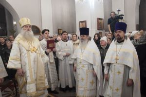 После отпуста литургии Высокопреосвященнейший Владыка обратился к духовенству и мирянам со словами поздравления.